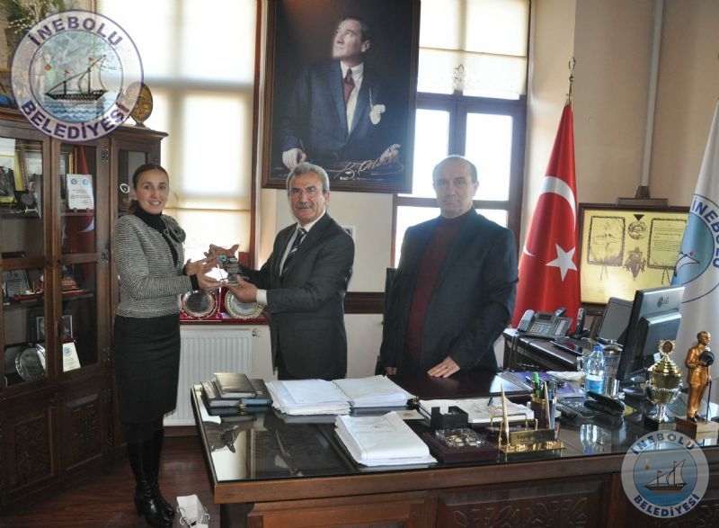 Ziyarette KASDERFED Başkanı Hasan ŞEN, 13-17 Mart 2013 tarihinde gerçekleştirilen Başkentte Kastamonu Günleri -9 etkinliğine ve Kastamonu’nun tanıtımına yapılan katkı ve desteklerden dolayı Belediye Başkanımız Engin UZUNER’e bir kez daha teşekkür ederken, İnebolu Belediyesi Heyamola Ekibine ve İnebolu HEM Bayanlar Halk Oyunları Ekibine plaket sundu. Plaketler, İnebolu HEM Bayanlar Halk Oyunları Ekibi adına İnebolu Belediyesi Basın Yayın ve Halkla İlişkiler Müdürü Sevinç ÖZLÜ’ye, İnebolu Belediyesi Heyamola Ekibi adına Ekip Sorumlusu Bilal ACAR’a takdim edildi.
