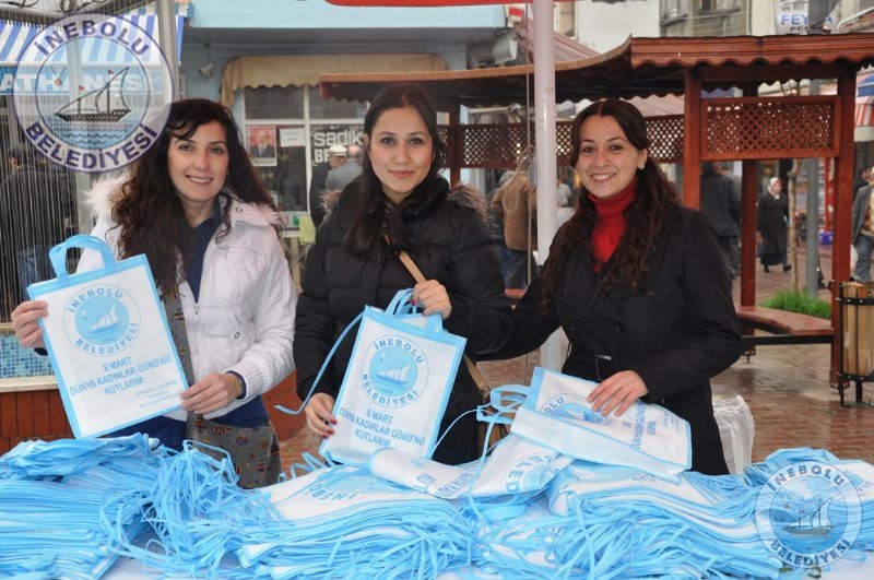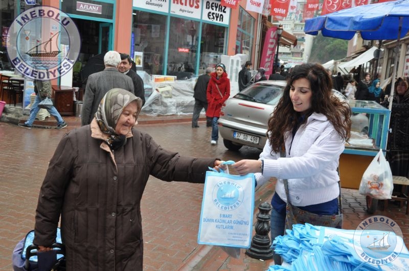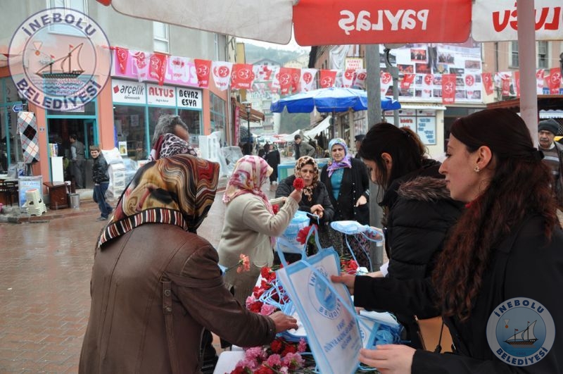 İnebolu Belediye görevlilerince, İnebolulu kadınlara, karanfiller, çantalar ve mutfak önlükleri, 08 Mart 2014 Cumartesi günü Pazaryeri Meydanında dağıtıldı.