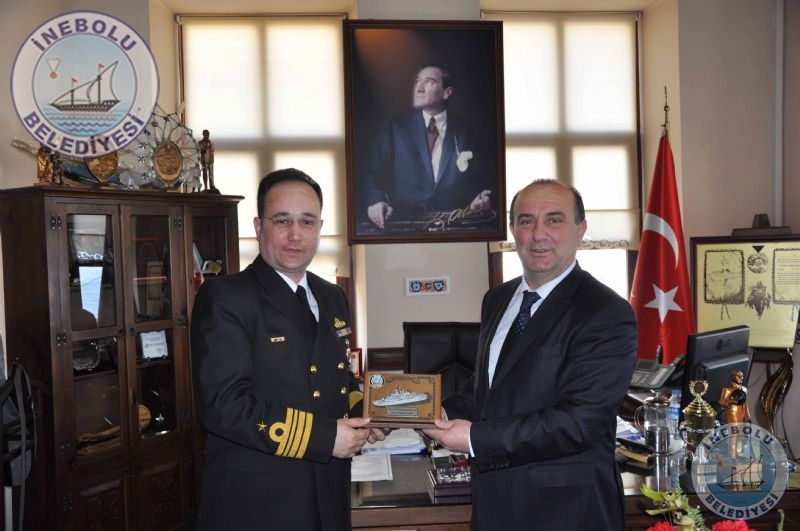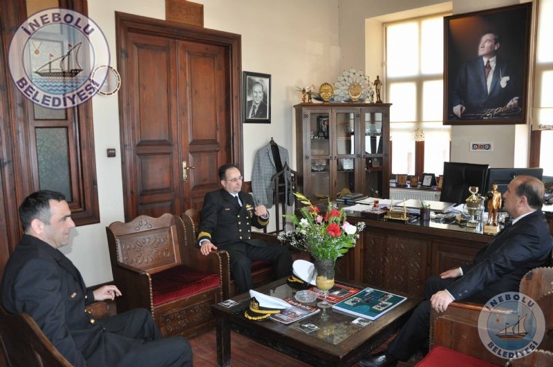 TCG Fatih Fırkateyn Komutanı Dz.Kur.Yb. İbrahim Kurtuluş SEVİNÇ ve Dz. Bnb. Ozan KÜLAHÇI, Belediye Başkanımız Engin UZUNER’i makamında ziyaret ettiler.
