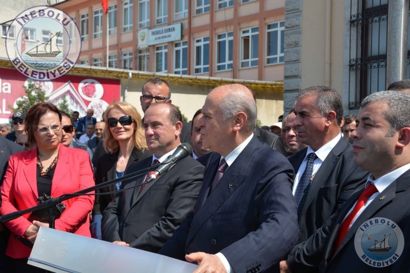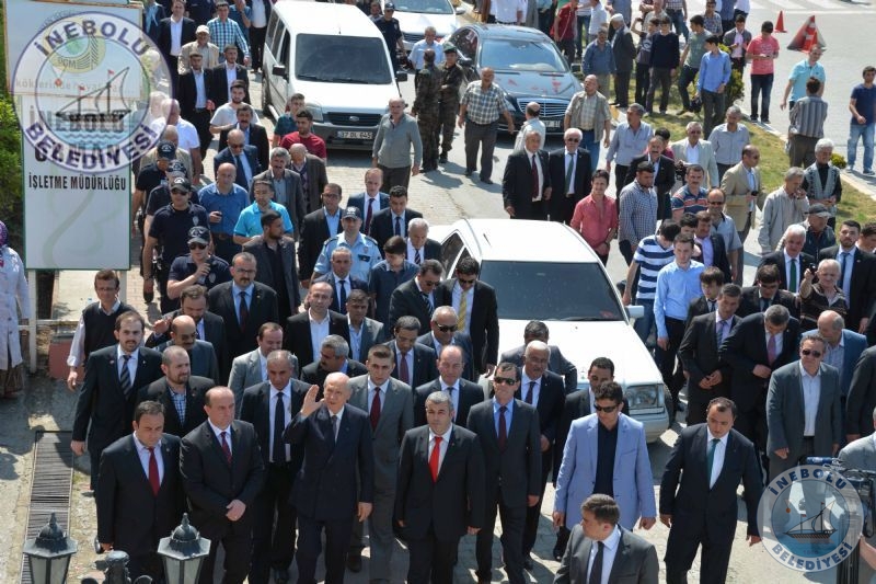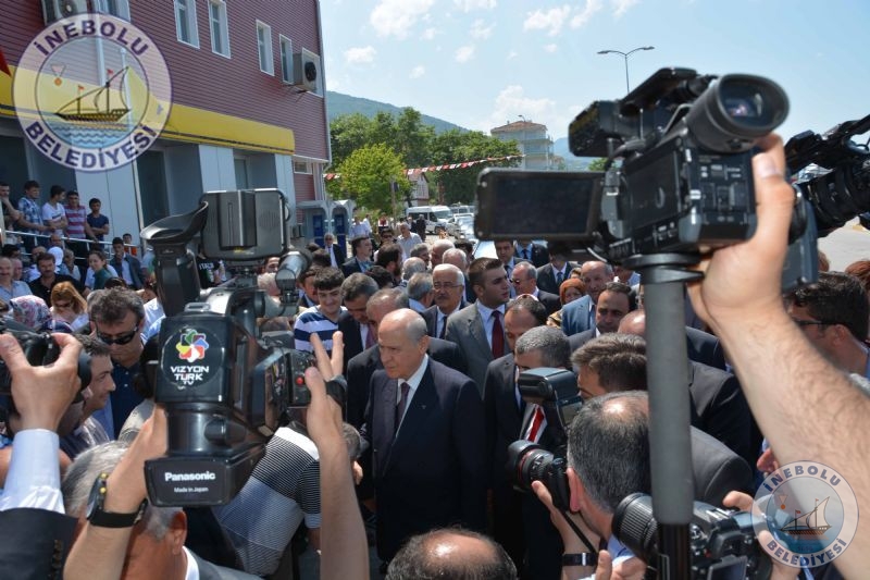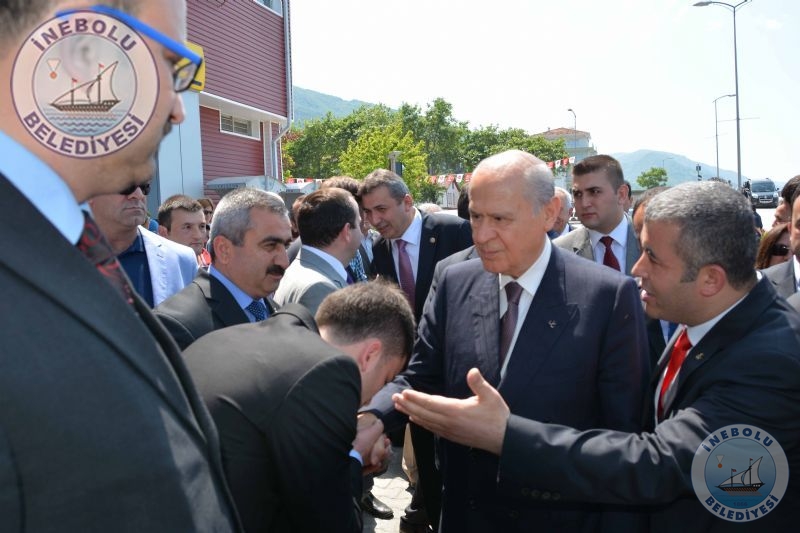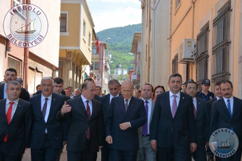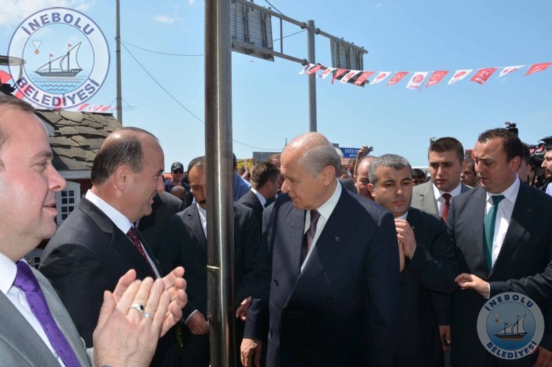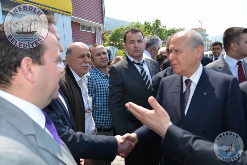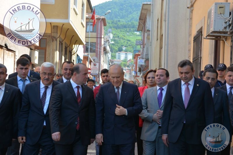 MHP Genel Başkanı Devlet BAHÇELİ ilçemize geldi. 30 Mart 2014 Mahalli İdareler seçimlerinin iptal edilerek tekrar 1 Haziran’da seçime gidecek olan Çatalzeytin ilçesinde miting yapmak üzere Kastamonu’ya gelen Devlet BAHÇELİ, Partisinin seçimi kazandığı Ağlı ve Küre İlçelerinin ardından İnebolu’yu ziyaret etti. Belediye binası önünde kalabalıkla karşılanan MHP Lideri Devlet BAHÇELİ tek tek vatandaşlarla tokalaştı. Ardından Belediye Başkanlık Makamına geçen Devlet BAHÇELİ, 30 Mart 2014 Mahalli İdareler seçimlerini kazanan Belediye Başkanımız Engin UZUNER ve ekibini tebrik etti.