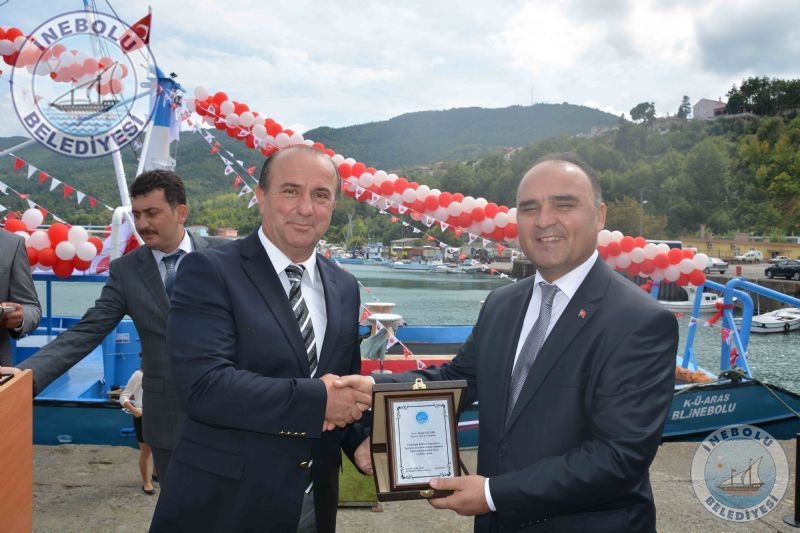 Belediye Başkanımız Engin UZUNER’e Su Ürünleri Fakültesinin bilimsel araştırma ve inceleme gemisine yapmış olduğu katkılardan dolayı plaket takdim edildi.  Daha sonra Kastamonu Üniversitesi Su Ürünleri Fakültesi'nin Aras isimli araştırma gemisinin kurdelesi kesildi.
