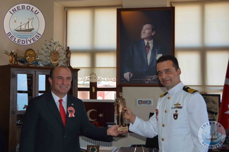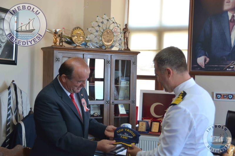 Komutan ziyaretlerinde Başkan UZUNER'e çeşitli hediyeler sundular. Başkan UZUNER ise Fatih Fırkateyni Komutanına bronzdan yapılmış elinde şapkası bulunan Atatürk Heykelciği ile içerisinde çeşitli hediyelerin yer aldığı İnebolu Belediyesi çantası takdim etti.