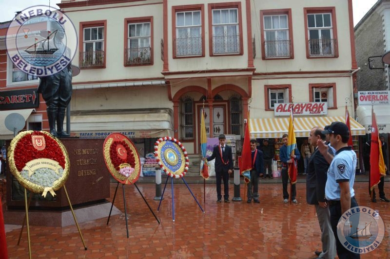 Anıt önündeki  törene  İnebolu Kaymakamı Gökhan GÖRGÜLÜARSLAN, Garnizon Komutanı Per. Yzb. Hüseyin ERK,  Belediye Başkanımız Engin UZUNER, C. BaşSavcısı Kerem ARABACI,  Askeri ve Adli Erkan,  Kamu Kurum ve Kuruluşlarının Temsilcileri , Siyasi Partilerin İlçe Başkanları, Banka Müdürleri, Meslek Odaları Başkanları ve Gazilerin  katılımı ile gerçekleşti. Kaymakamlık, Garnizon Komutanlığı, Belediye Başkanlığı çelengi ile beraber,  Gaziler adına bir çelenk konularak,  Çelenk sunumu tamamlandı.