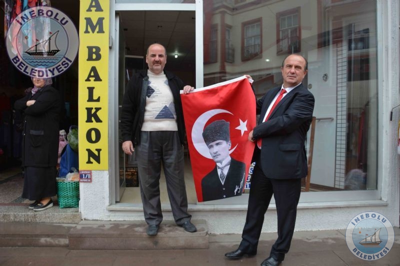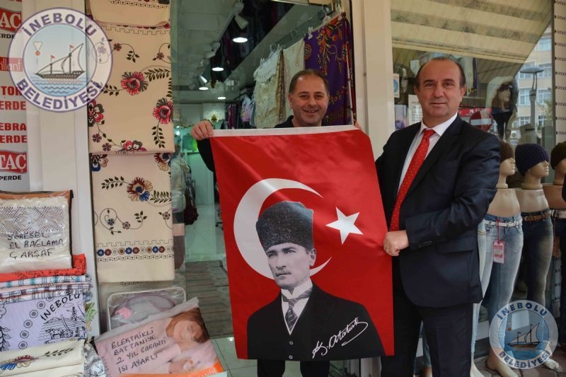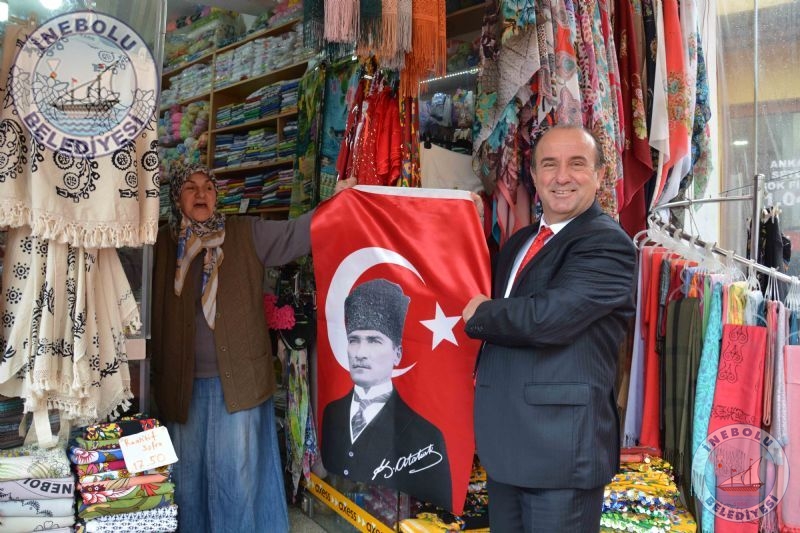 Belediye Başkanımız Engin UZUNER, Cumhuriyetimizin 91. yıldönümünde ilçemiz esnaflarının 29 Ekim Cumhuriyet Bayramını kutlayarak, esnaflarımıza dükkanlarına asmaları için Türk bayrağı hediye etti.