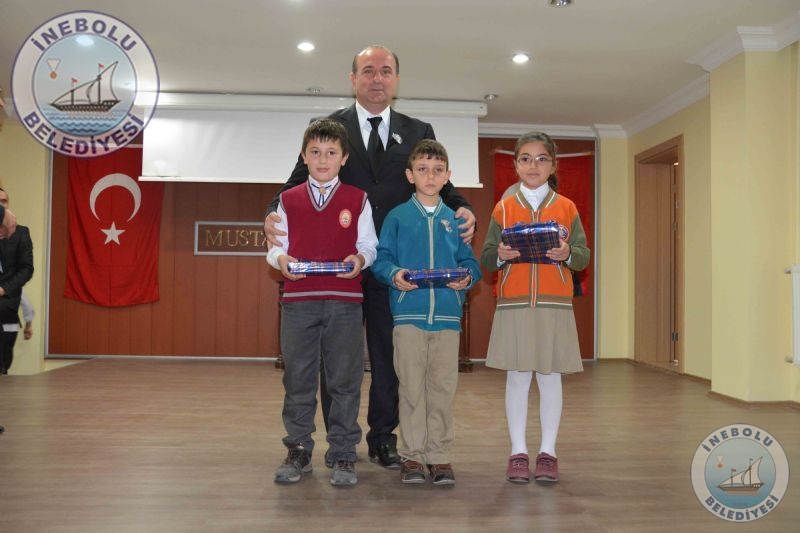 10 Kasım nedeniyle okullar arasında düzenlenen kompozisyon, resim ve şiir yarışmalarında dereceye giren öğrencilere ödülleri verildi.