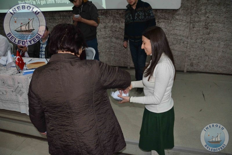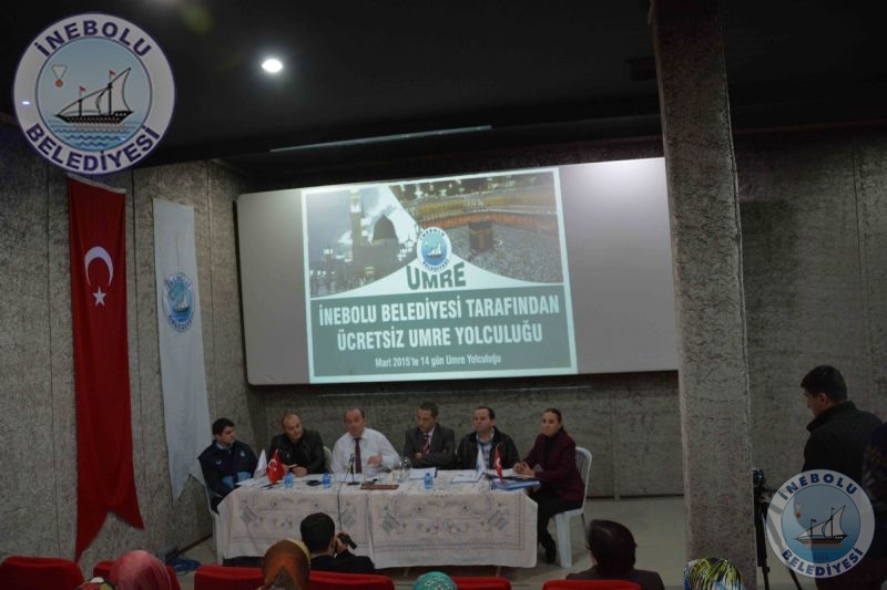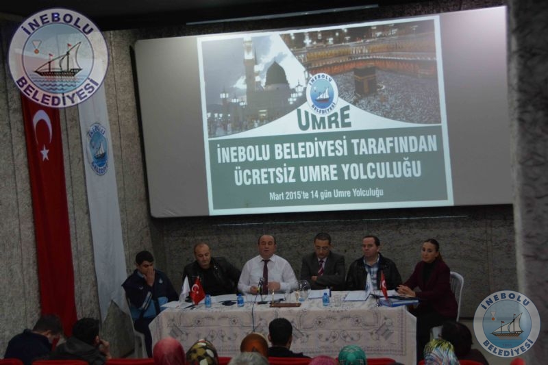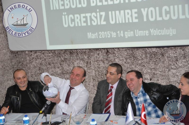 İnebolu Belediyesince 2015 yılı Mart ayı 14 günlük ücretsiz Umre Yolculuğu Programı kuraları 22 Aralık 2014 Pazartesi günü saat 15.00’de İnebolu Belediyesi Sinema ve Çok Amaçlı Toplantı Salonunda Belediye Başkanımız Engin UZUNER’in Başkanlığında, Umre komisyonu ve başvuruda bulunan İnebolu’luların huzurunda çekildi.
