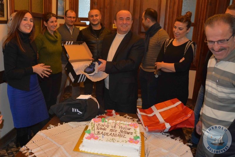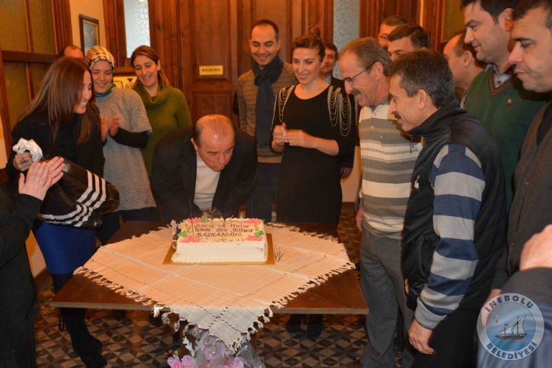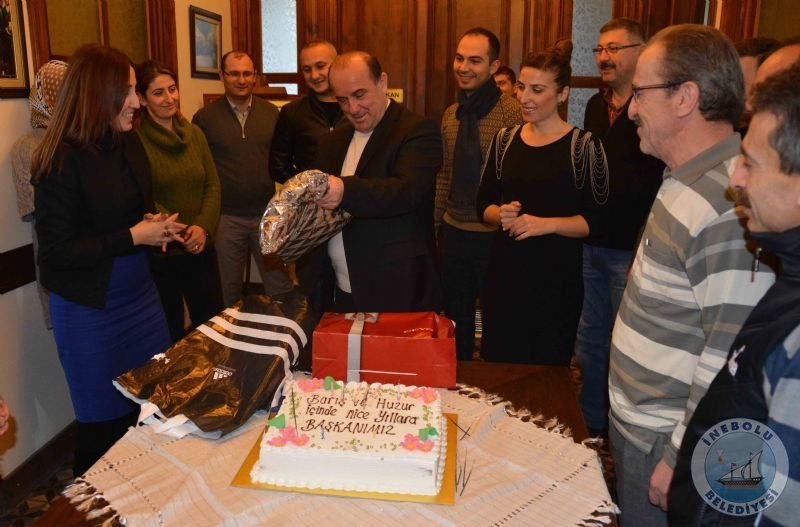 Belediye personelince kendisi için hazırlatılan sürpriz yeni yıl pastasını kesmeden önce,  Başkanımız UZUNER,  “Tüm Personelin 2015 yılını kutlayarak; sağlıklı, mutlu, huzur dolu bir yıl geçirmeleri temennisinde bulunurken,  2015 yılında hayırlı hizmetler yapmayı Allah nasip etsin” dedi.