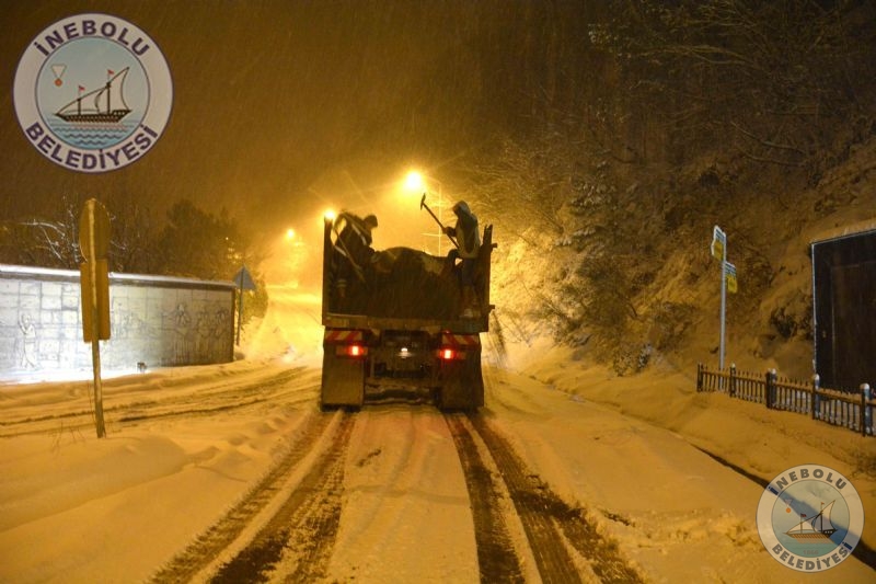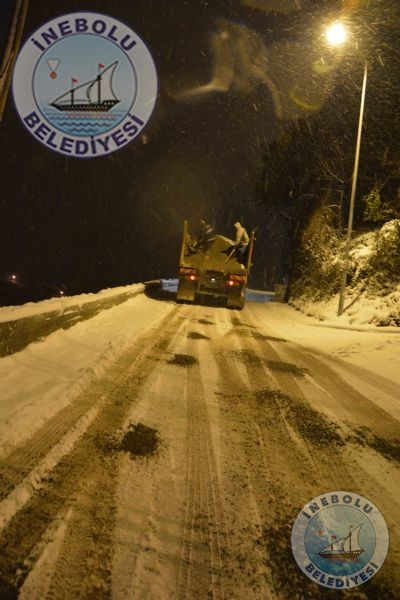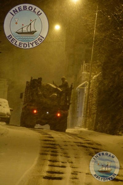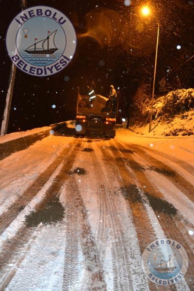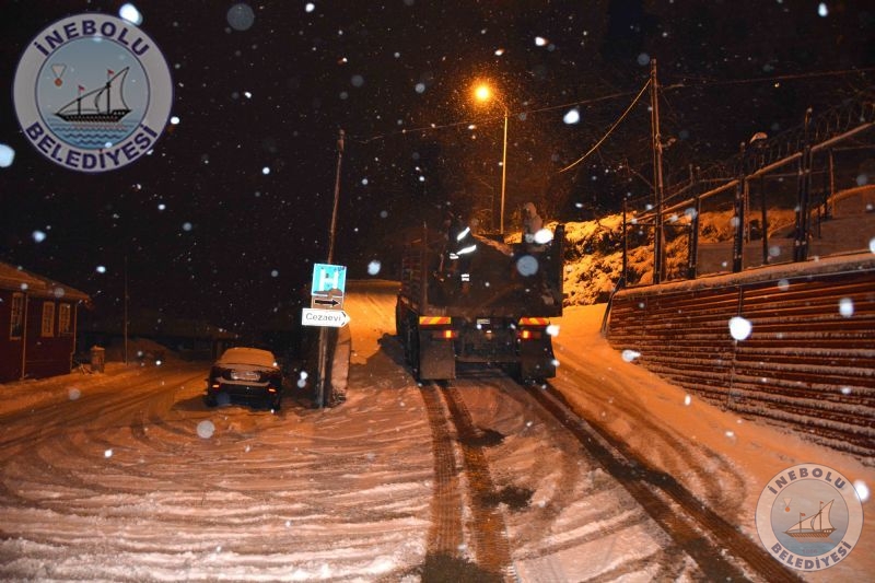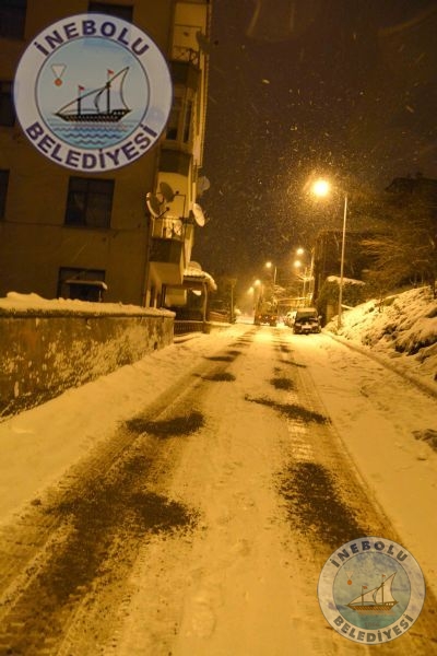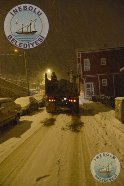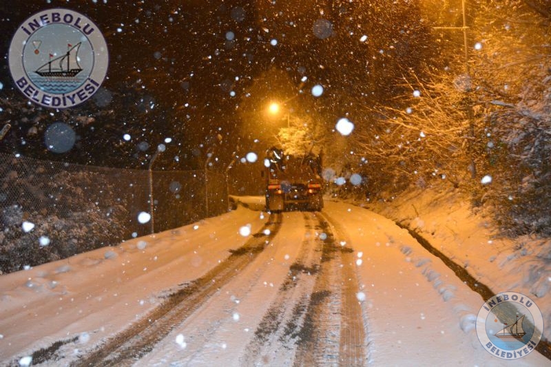 Belediyemiz meteorolojiden gelen haberler doğrultusunda, İnebolu’da herhangi bir olumsuzluk yaşanmaması için önceden önlem almıştı. Belediyemiz ekipleri, ilçemiz cadde ve  sokaklarında,  tuzlama, kumlama ve kar küreme  çalışmalarına başladı.