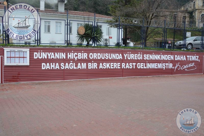 Belediyemiz tarafından yapılan Mustafa Kemal Paşa Caddesi ve Hastane yolu alt yapı ve yol yenileme çalışmalarının tamamlanmasının ardından, Belediyemizce bu defa Atatürk ve İstiklal Yolu  Yürüyüş güzergahında bulunan boş duvarlar yenilerek kendine  yakışan bir görüntüye kavuşturuldu.Aşı Boyalı İnebolu evlerinin renginden esinlenerek dış cephe kaplamasıyla kaplanan duvarlara, 34 cm yüksekliğinde harflerden oluşan "Atatürk’ün Türk ordusu için söylediği “Dünyanın Hiçbir Ordusunda Yüreği Seninkinden Daha Temiz, Daha Sağlam Bir Askere Rast Gelinmemiştir.”   dekota yazısı  ve eski Atatürk Anıtından çıkan Atatürk’ün İnebolu’ya gelişini ve Milli Mücadelede cephane sevkiyatını betimleyen rölyefler ve ışıklı İstiklal Madalyası ve Beratı panosu yerleştirildi.