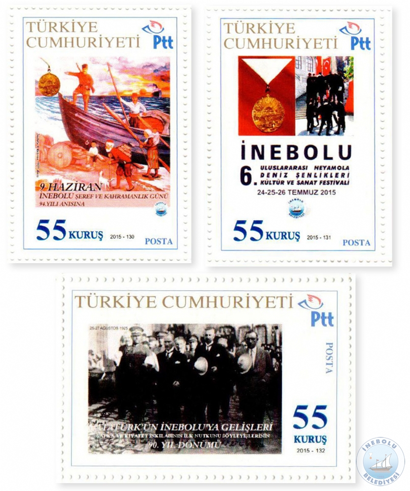 İnebolu Belediyesi, ilçemizin kültürel yönden tanıtımına katkı sağlamak üzere bir yeniliğe daha imza attı. Belediyemizce 9 Haziran İnebolu Şeref ve Kahramanlık Günü’nün 94. yıl anısına, İnebolu 6. Uluslararası Heyamola Deniz Şenlikleri Kültür ve Sanat Festivali ve Atatürk’ün İnebolu’ya Gelişleri Şapka ve Kıyafet İnkılabının ilk Nutkunu söyleyişlerinin 90. yıldönümü resimlerinin yer aldığı özel pullar bastırıldı.