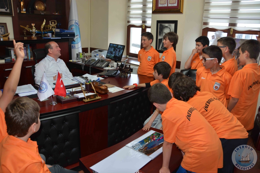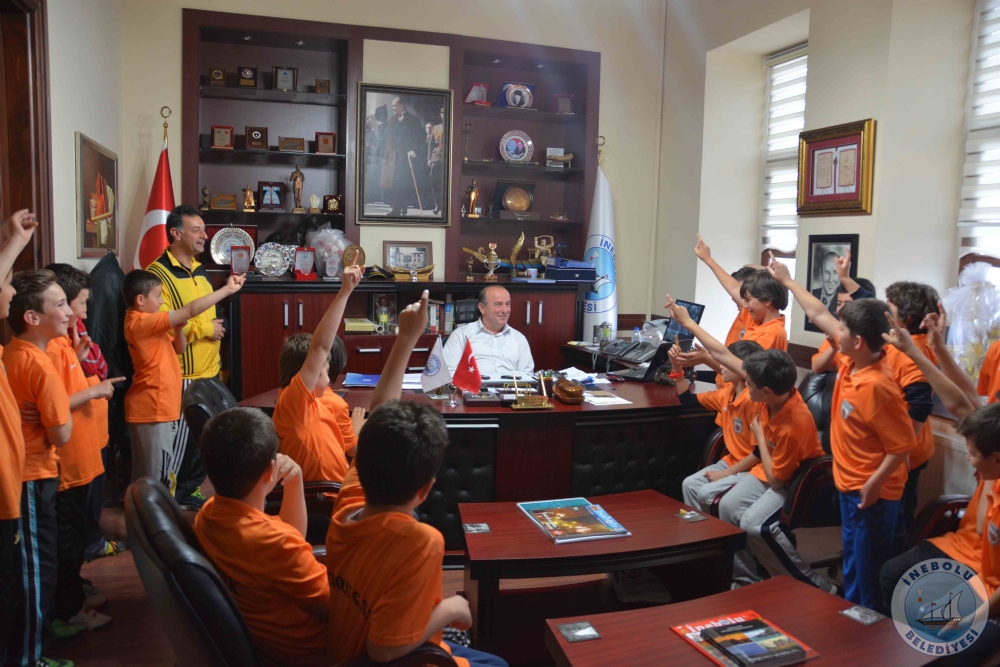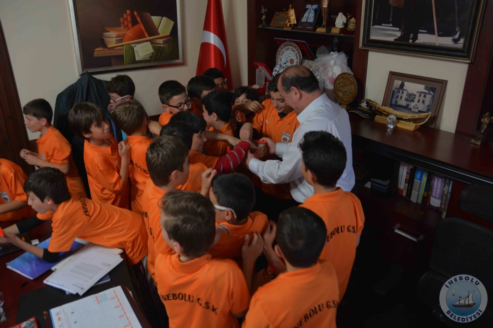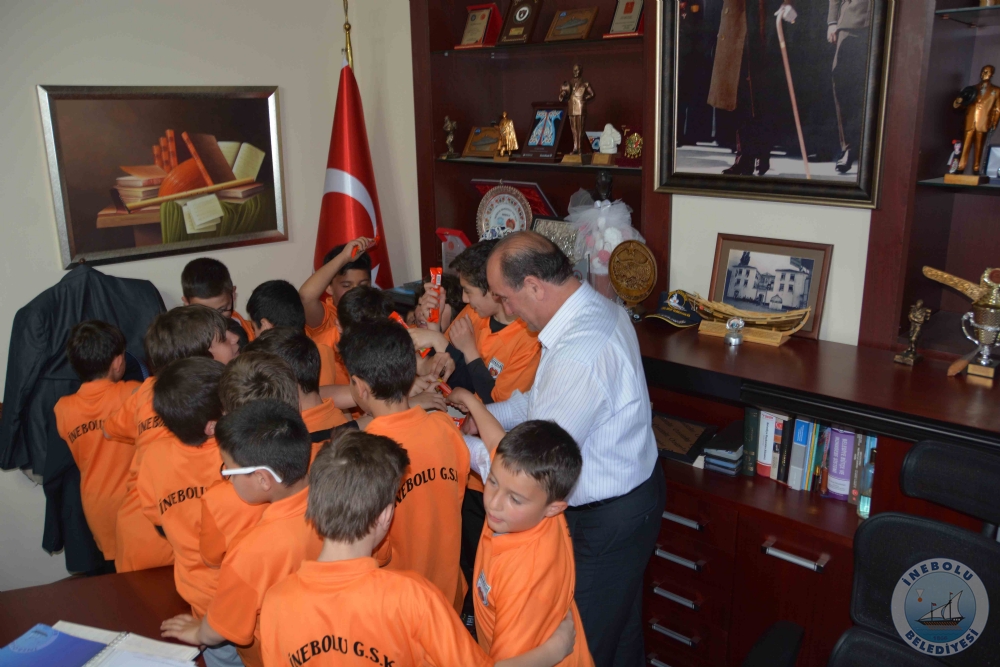 İnebolu Gençlik ve Spor Kulübü 2. Başkanı Ahmet ÇEÇEN, Genel Sekreter Talat REİS ve Antrenör Bülent REİS ve U11 - U12 altyapı takımları 08 Mayıs 2015 Cuma günü Belediye Başkanımız Engin UZUNER’i takımlarına yaptığı yardım ve desteklerden dolayı teşekkür ziyaretinde bulundular.