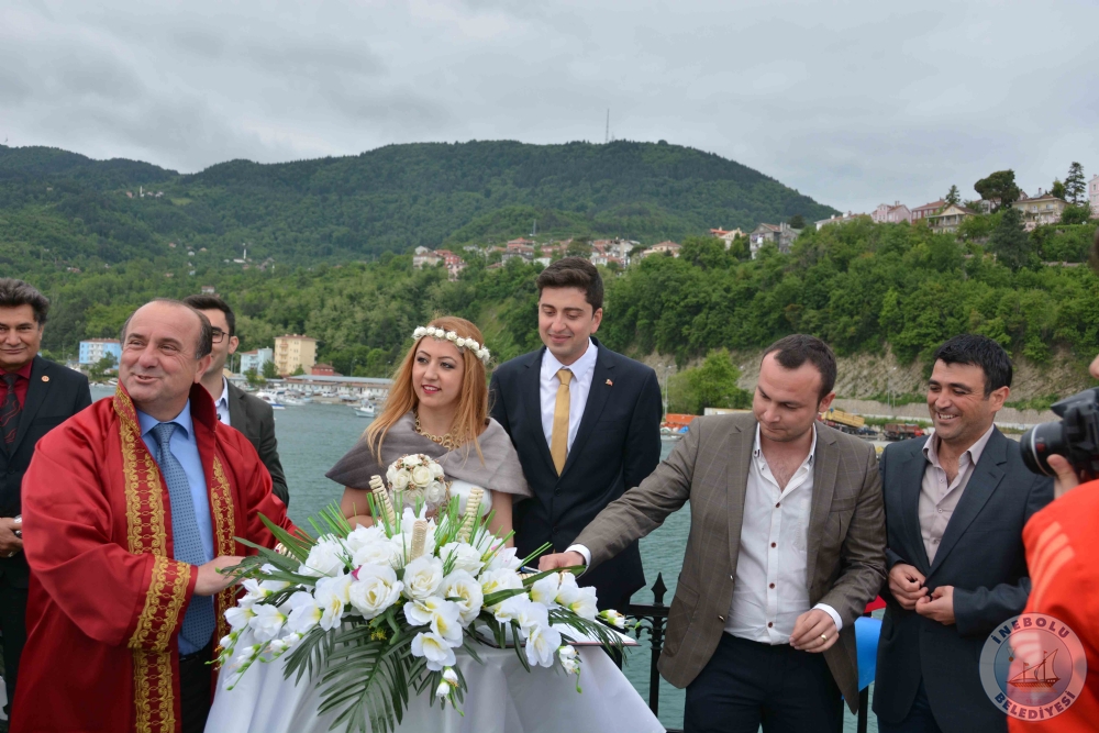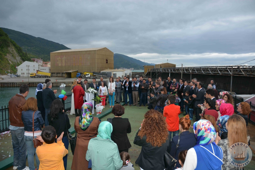 Belediye Başkanımız Engin UZUNER'in girişimleri ile İstanbul Büyükşehir Belediyesi'nden teslim alınan ve İstiklal Madalyalı ilçemize armağan edilen “YİĞİT İNEBOLU” yolcu gemisinde ilk nikah töreni gerçekleştirildi. Belediye Başkanımız Engin UZUNER tarafından nikahları kıyılan İnebolu İlçe Milli Eğitim Müdürlüğü'nde görevli öğretmenler Funda Tanrıverdi ile Mehmet Fatih Özsoy hayatlarını Yiğit İnebolu gemisinde birleştirmeyi seçtiler. Belediye Başkanımız Engin UZUNER'in kıydığı nikah akdinde, Başkan UZUNER, genç çiftlerİ tebrik ederek, mutluluklar diledi ve çifte kahve fincanı takımı hediye etti.