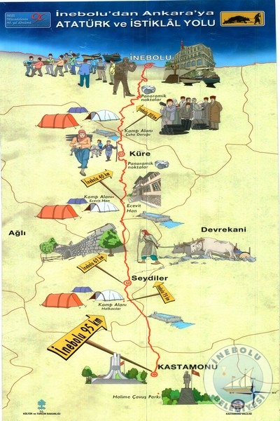 İnebolu Belediyesi, Atatürk ve İstiklal yolu yürüyüşüne katılacak yürüyüşçülerin 4 günlük iaşelerini karşılayacak olup, yürüyüşçüler ilk gece Seydiler Halkacılar'da, ikinci gece Ecevit'te, üçüncü gece ise Çuha Doruğu'nda kamp kuracaklardır. 12 Haziran 2015 Cuma günü Çuha Doruğu mevkiindeki kamp alanında saat 18.00'de Belediyemizce belgesel sunumu ve müzik eğlence yapılacaktır.