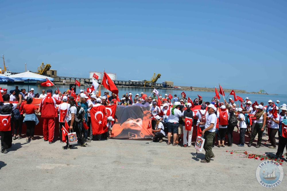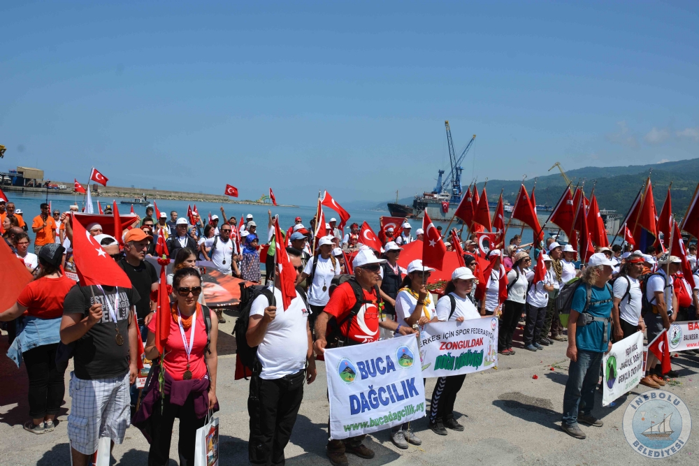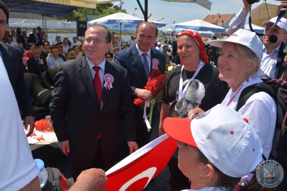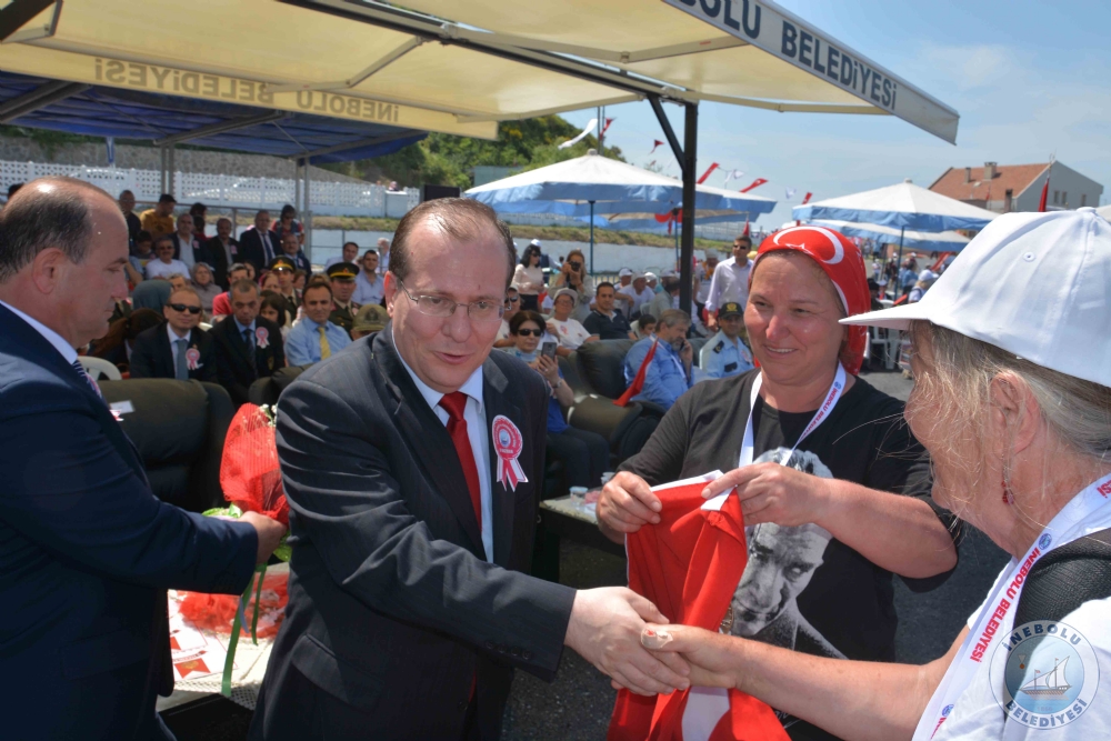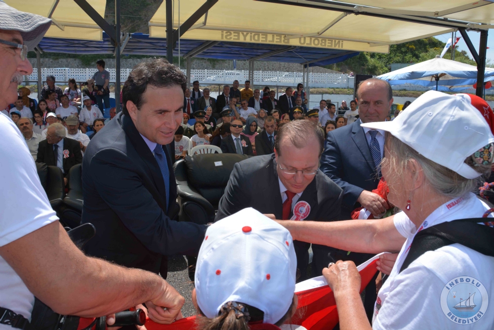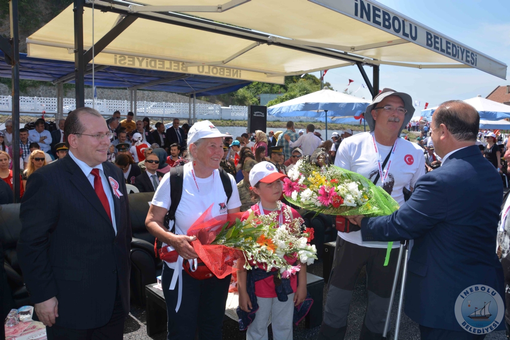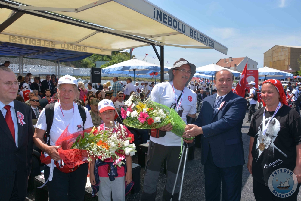 İnebolu Limanında gerçekleştirilen kutlamalarda ilk olarak Vali Yrd. Aytekin YILMAZ’a, Kastamonu’dan 10 Haziran’da yürüyüşe başlayan ve Atatürk ve İstiklal Yolu’nu kat ederek İnebolu’ya ulaşan yürüyüşçüler, Türk Bayrağı takdim etti. Türk Bayrağını alan YILMAZ, yürüyüşçüleri tebrik ederek teşekkür etti.