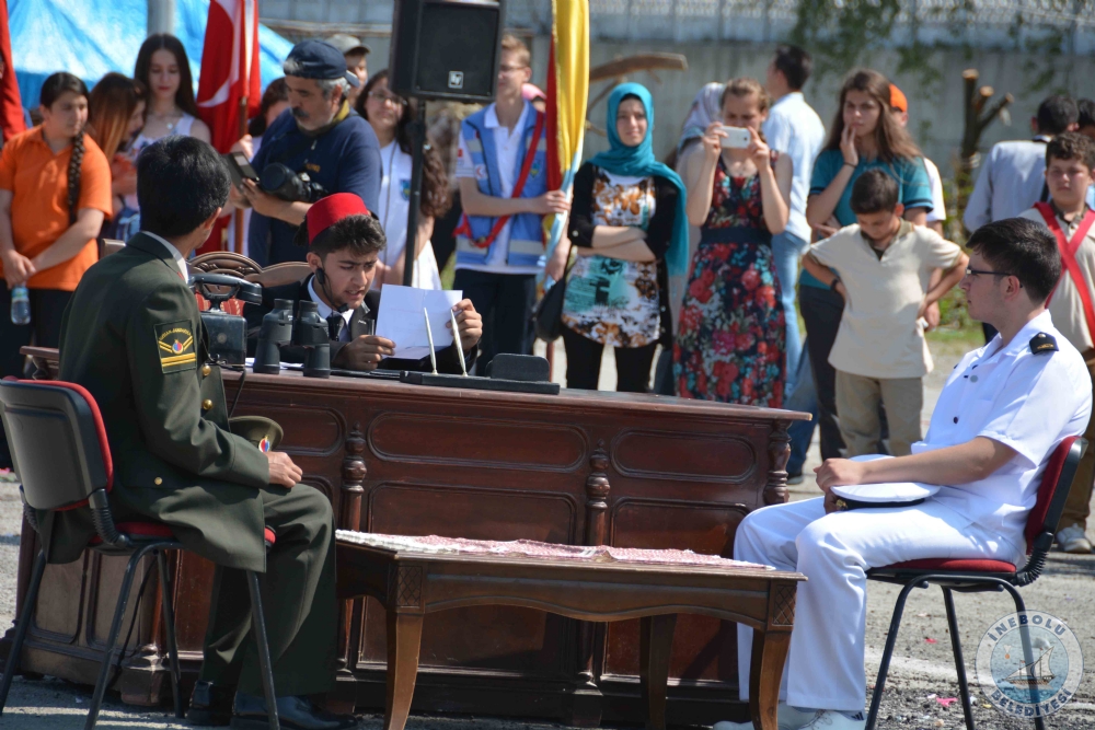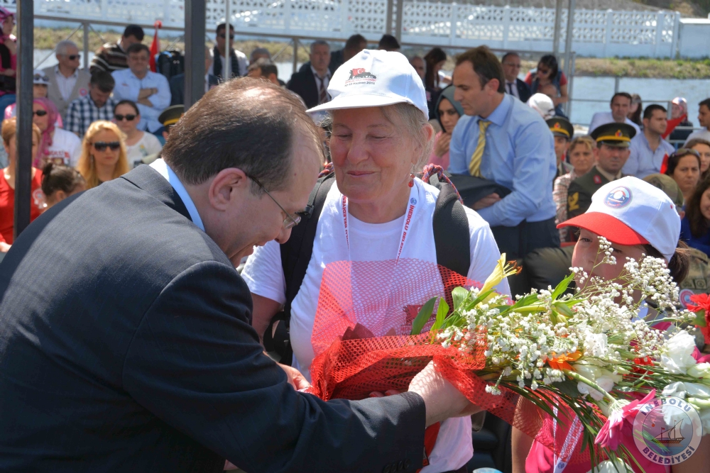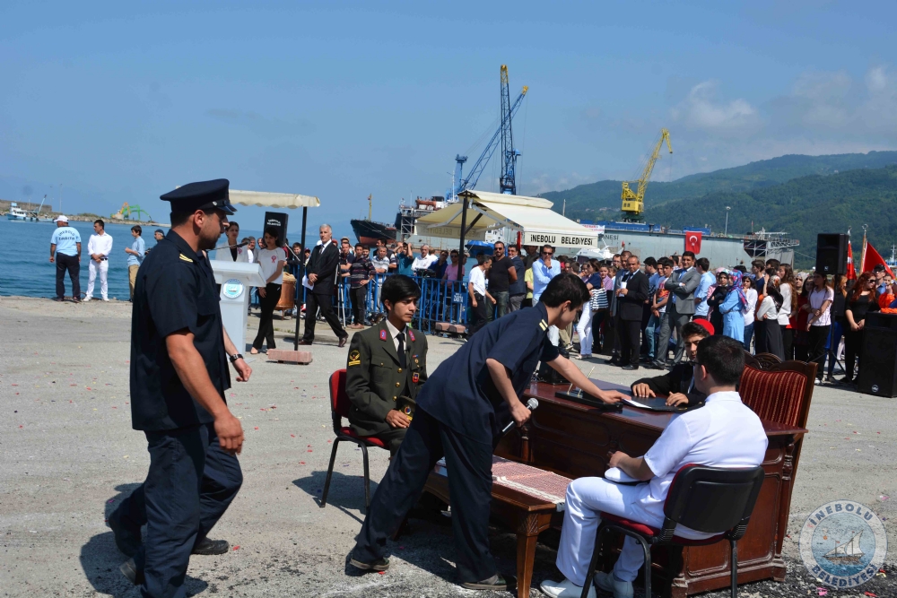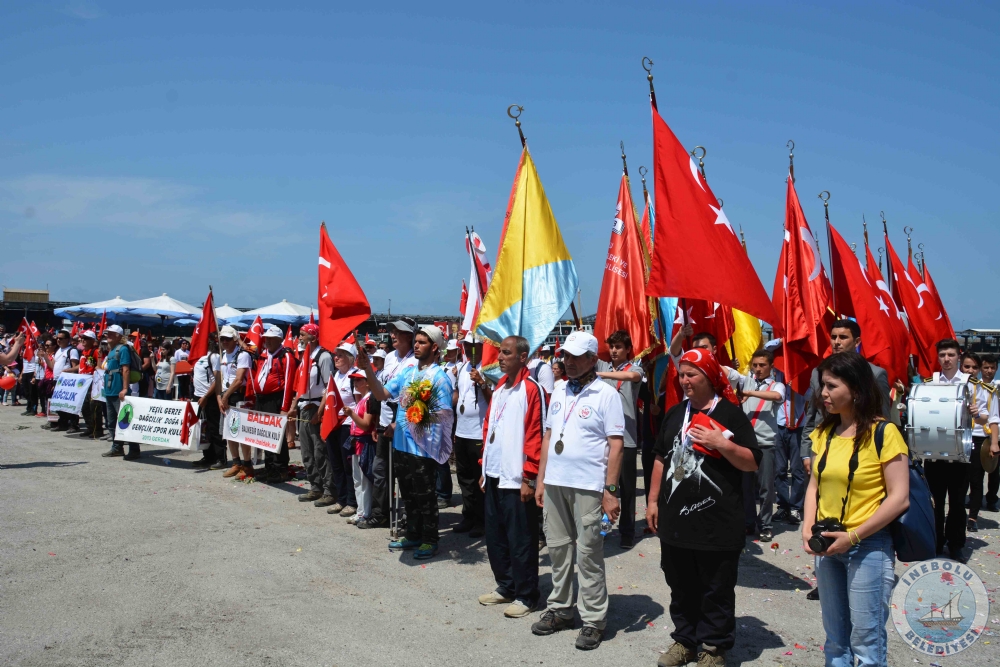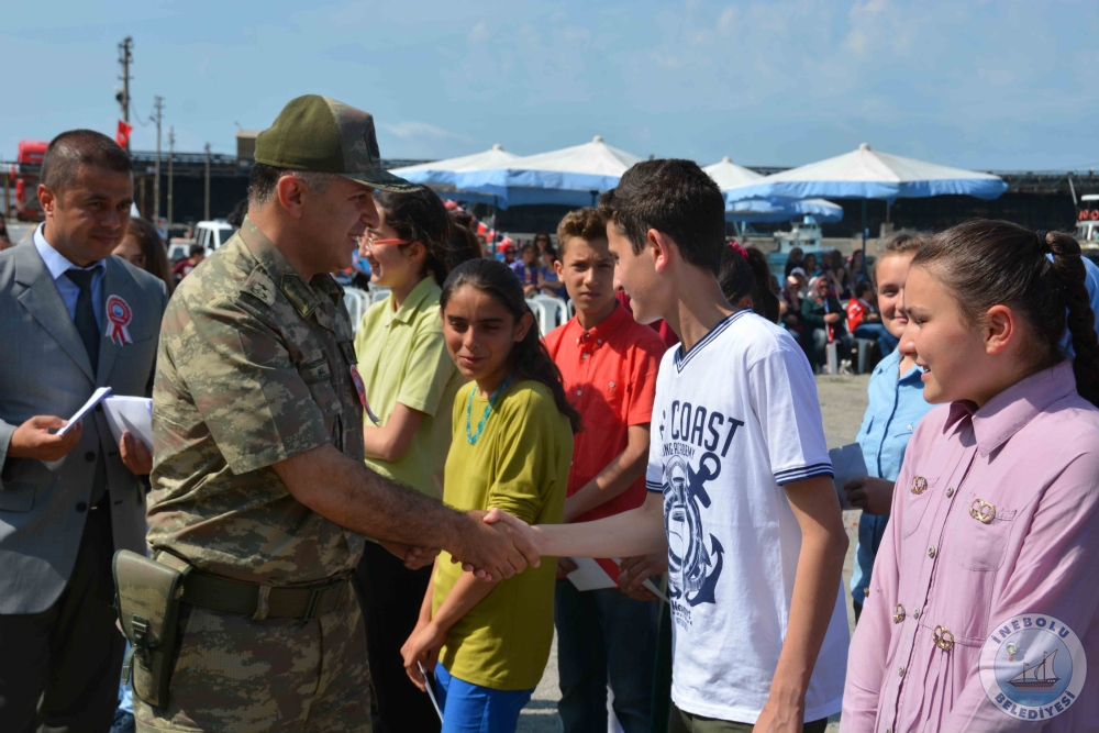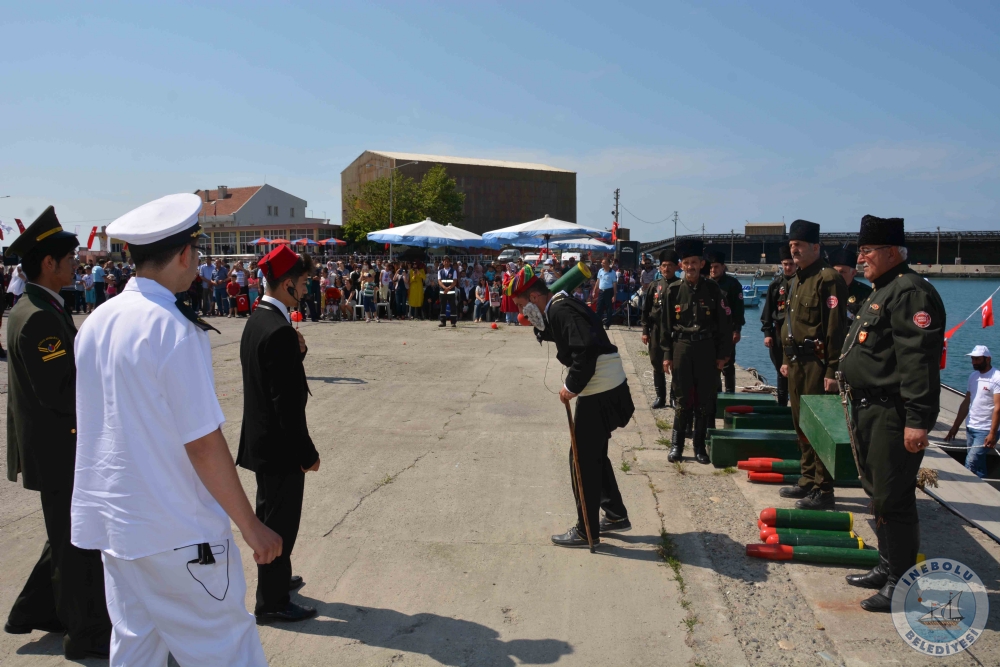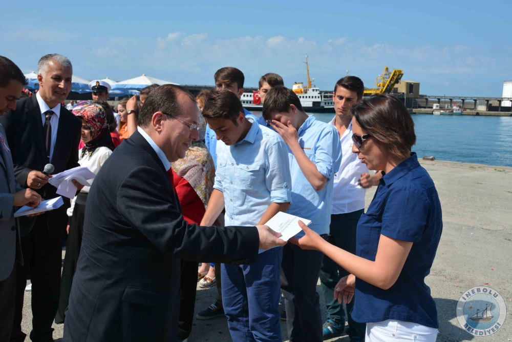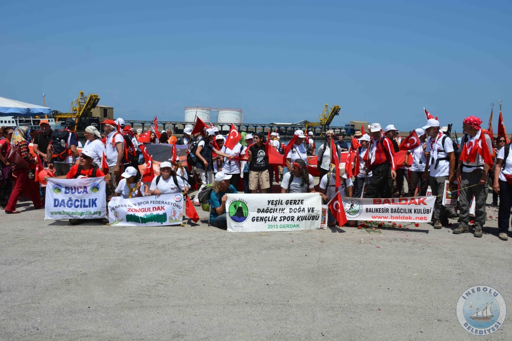İnebolu Limanında gerçekleştirilen kutlamalarda ilk olarak Vali Yrd. Aytekin YILMAZ’a, Kastamonu’dan 10 Haziran’da yürüyüşe başlayan ve Atatürk ve İstiklal Yolu’nu kat ederek İnebolu’ya ulaşan yürüyüşçüler, Türk Bayrağı takdim etti. Türk Bayrağını alan YILMAZ, yürüyüşçüleri tebrik ederek teşekkür etti.