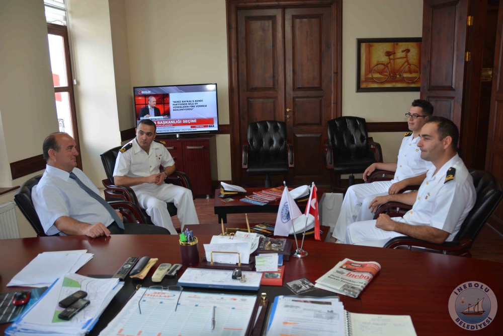 TCG KİLİMLİ Gemi Komutanı Deniz Kd. Yzb. İlker ALBAYRAK ve Başçarkçı Deniz Kd. Üstteğmen Hakkı Gökhan NERGİZ ve Teğmen Fatih TALAY Belediye Başkanımız Engin UZUNER’i makamında ziyaret ettiler.