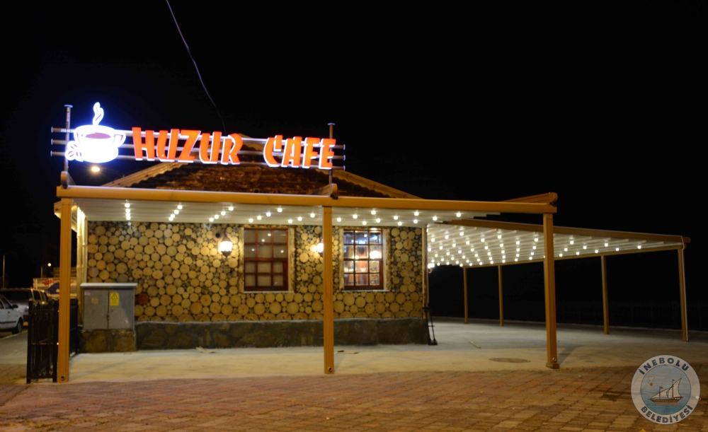 Mülkiyeti Belediyemize ait olan HUZUR KAFE’nin iç ve dış cepheleri dâhil olmak üzere komple yenilenerek, eskimiş görüntüsünden kurtarıldı. Belediyemizce kafenin dış cephesine ahşap kütüklerden farklı bir modelleme yapılarak kaplandı. İçerisi mutfak dahil olmak üzere komple yenilendi.