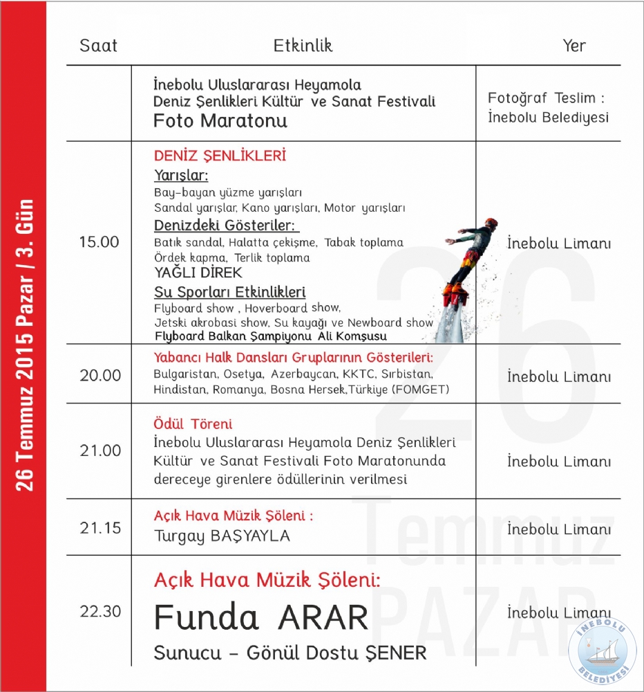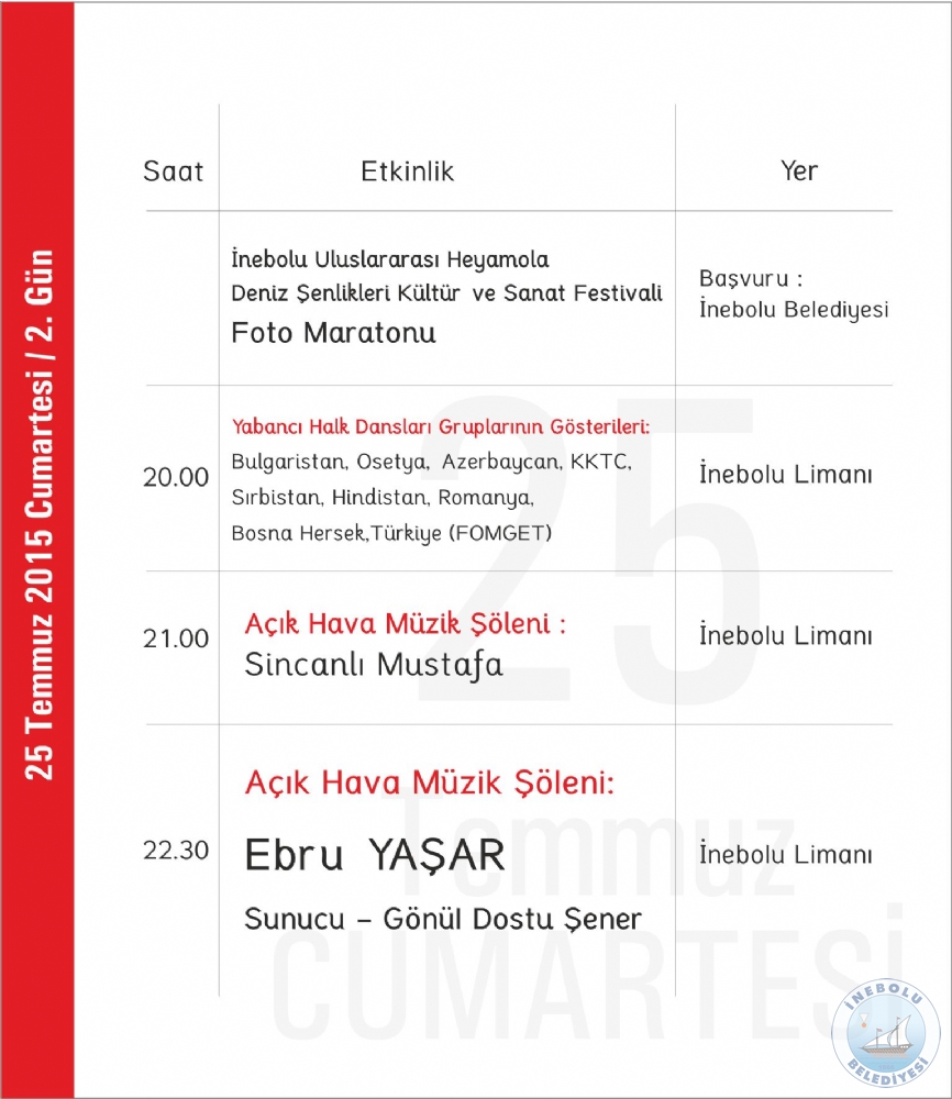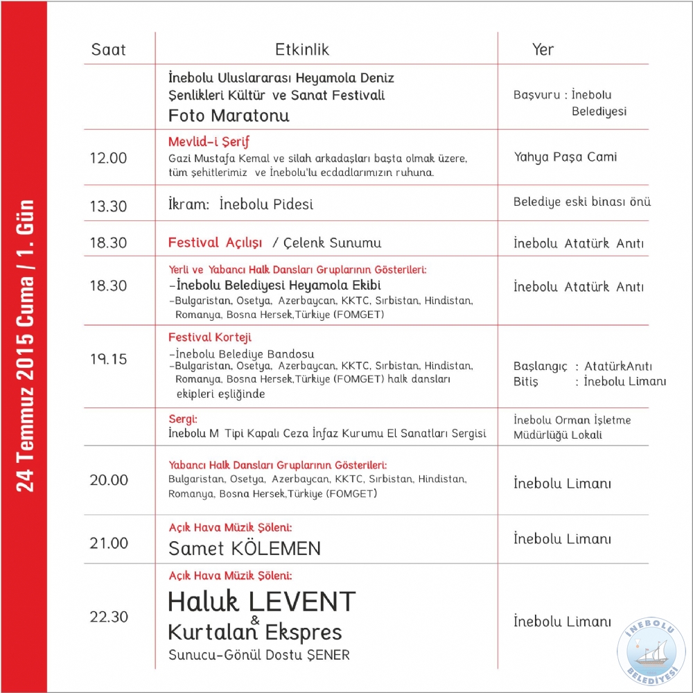 6.ULUSLARARASI İNEBOLU HEYAMOLA DENİZ ŞENLİKLERİ KÜLTÜR VE SANAT FESTİVAL PROGRAMI