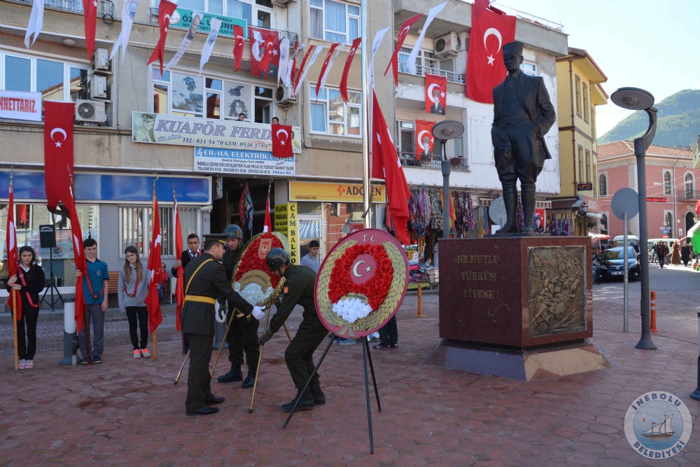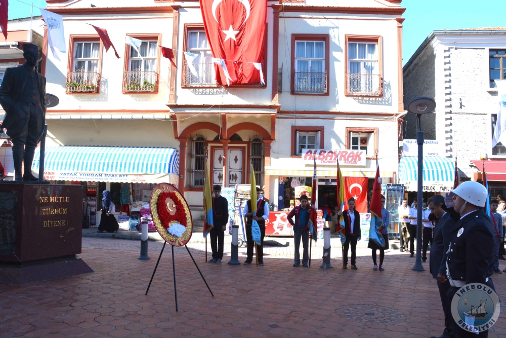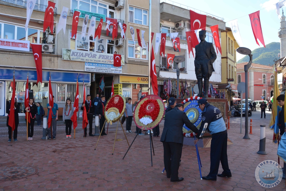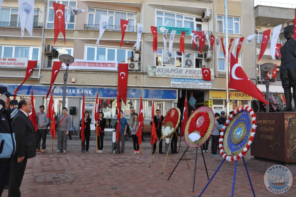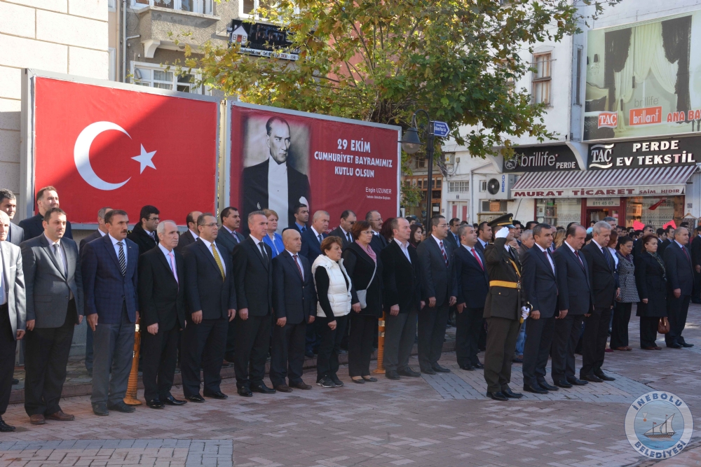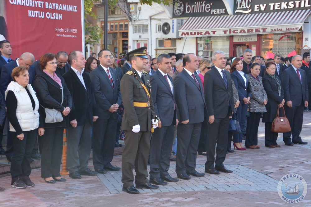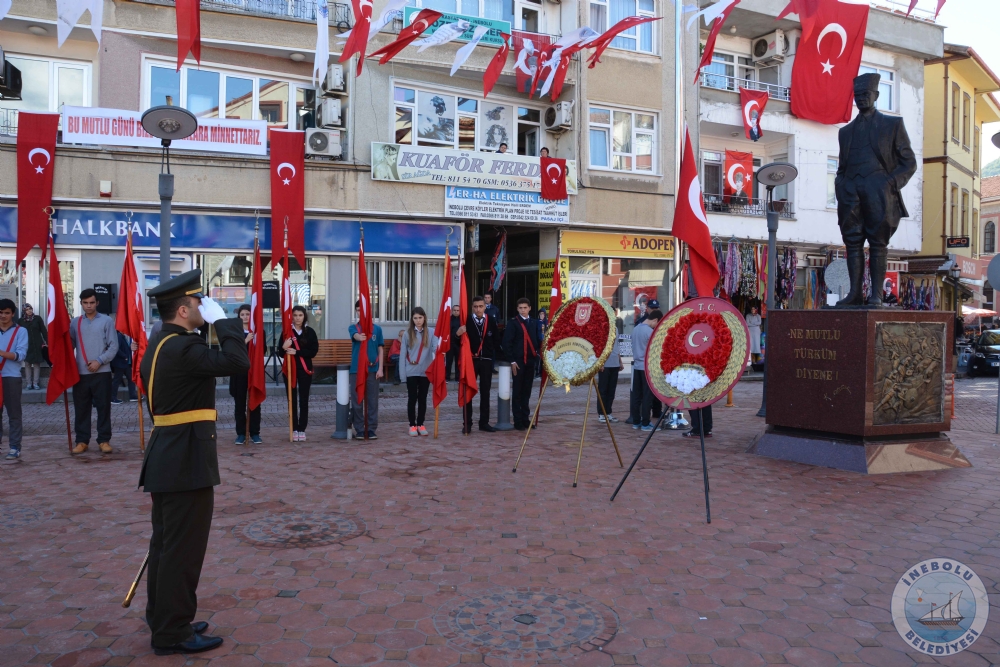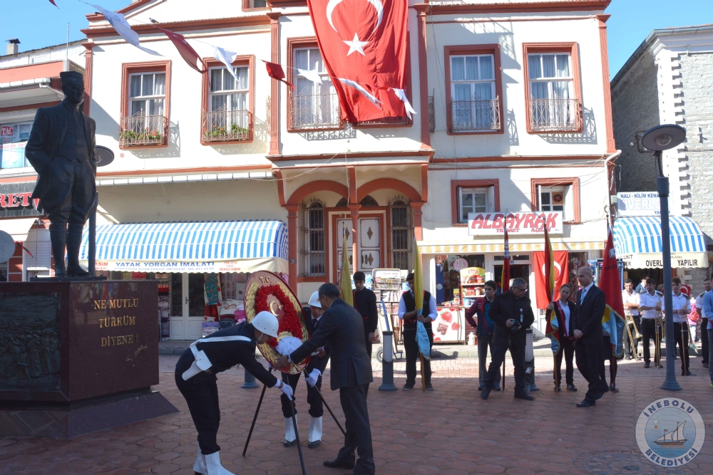 Cumhuriyetimizin 92. yıldönümü kutlamaları kapsamında, 28 Ekim 2015 Çarşamba günü Saat:13.00 te İlçemiz Atatürk Anıtına İnebolu Kaymakamı Abdullah Atakan ATASOY, Belediye Başkanı Engin UZUNER, Garnizon Komutanı Per. Yzb. Hüseyin ERK tarafından çelenk sunuldu.