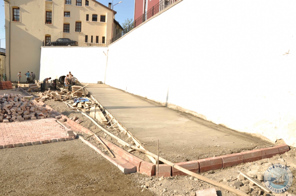Sanat sokağı yapılacak Türk Ocağı binasının yanındaki alanın zemininin alt yapısı Belediyemizce tamamlanarak, yerel ürün satış birimleri ve sergi alanları için hazır hale getirilmiştir.