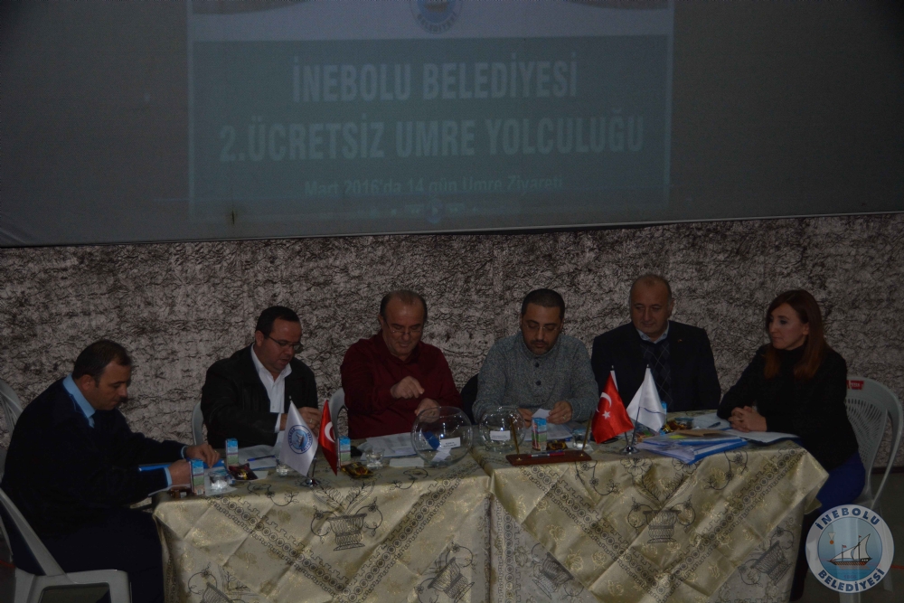 İnebolu Belediyesince 2016 yılı Mart ayı 14 günlük 2. Ücretsiz Umre Yolculuğu Programı kuraları 04 Aralık 2015 Cuma günü saat 14.00’de İnebolu Belediyesi Sinema ve Çok Amaçlı Toplantı Salonunda Belediye Başkanımız Engin UZUNER’in Başkanlığında, Umre komisyonu ve başvuruda bulunan İnebolu’luların huzurunda çekildi.