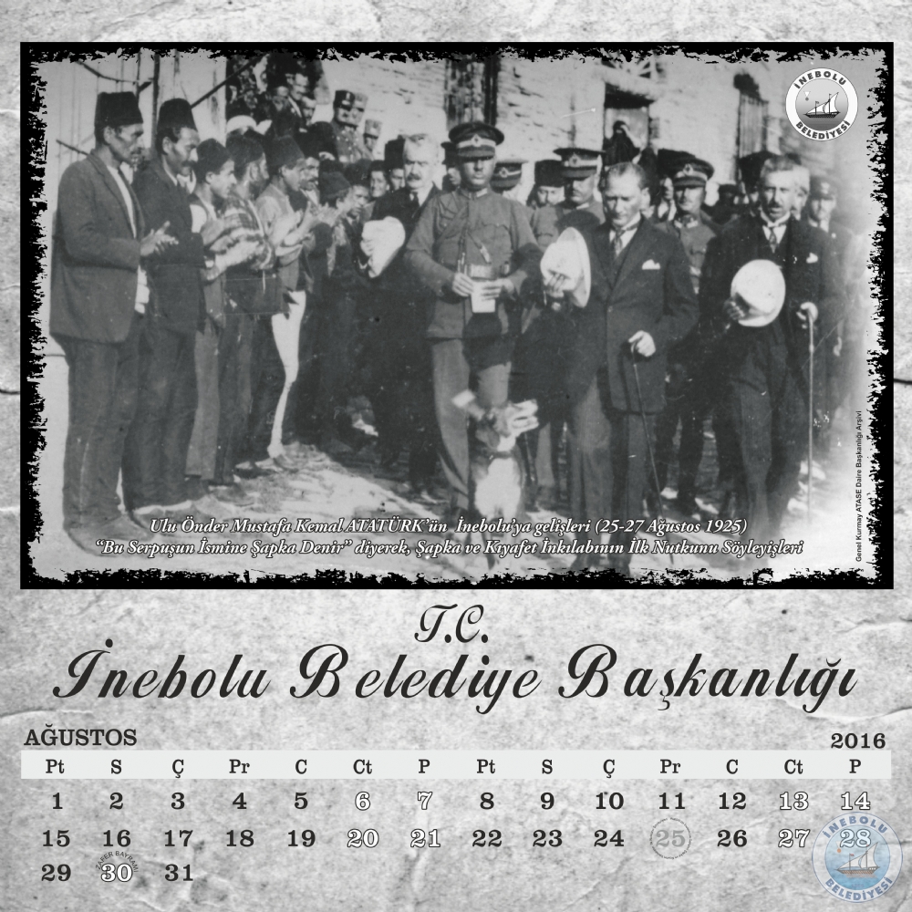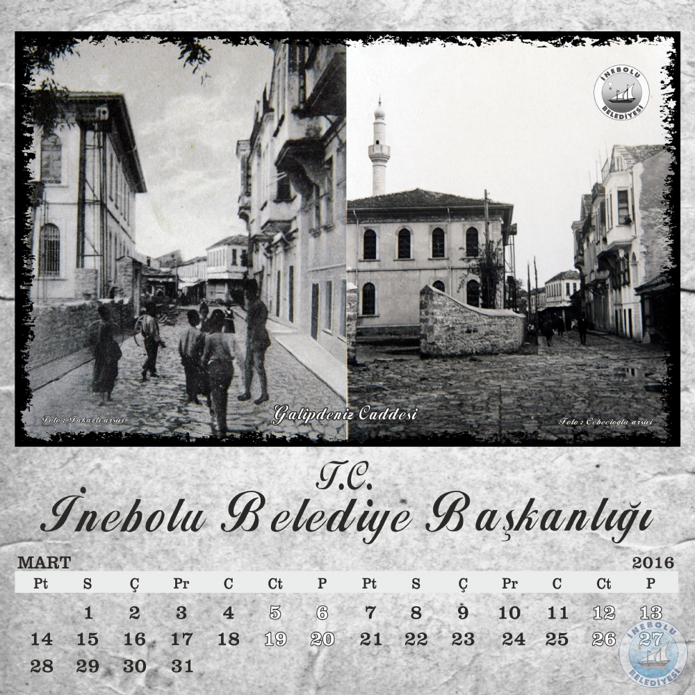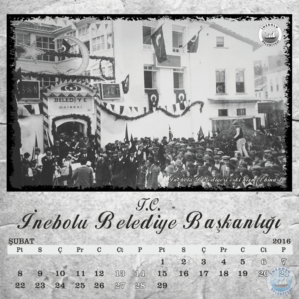Belediyemizce tarihi İnebolu fotoğraflarının yer aldığı 2016 yılı yeni yıl takvimi bastırıldı. Belediyemiz Basın Yayın ve Halkla İlişkiler Müdürlüğü'nce bastırılan 2016 yılı takvimlerinin kamu kurum ve kuruluşlarına, esnafımıza ve halkımıza dağıtımı süratle devam ediyor. Belediyemiz personellerince dağıtılan 2016 yılı takvimi vatandaşlarımızın büyük beğenisini kazandı.