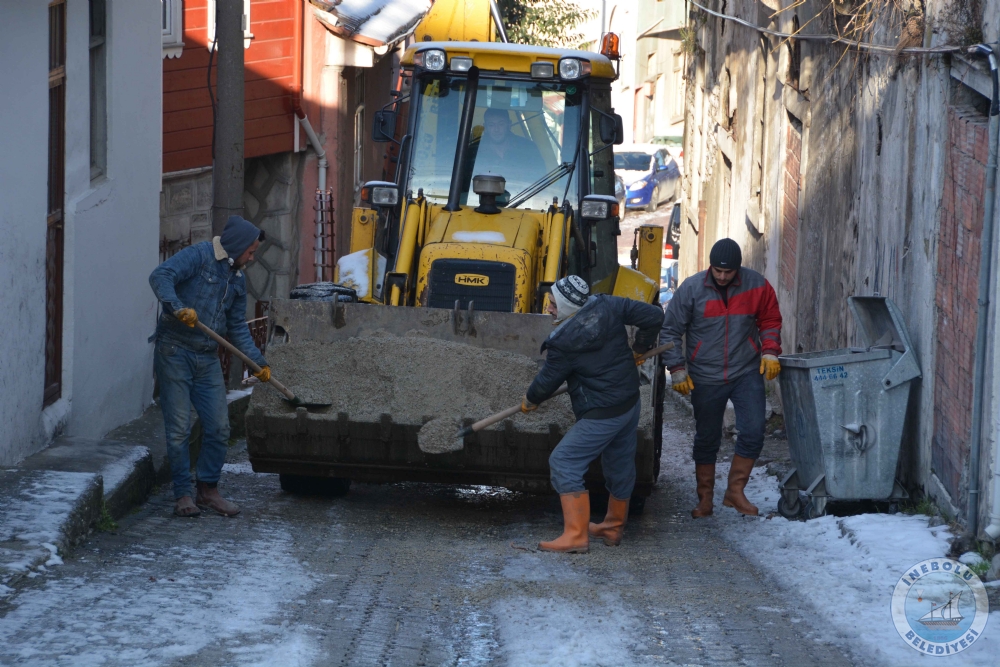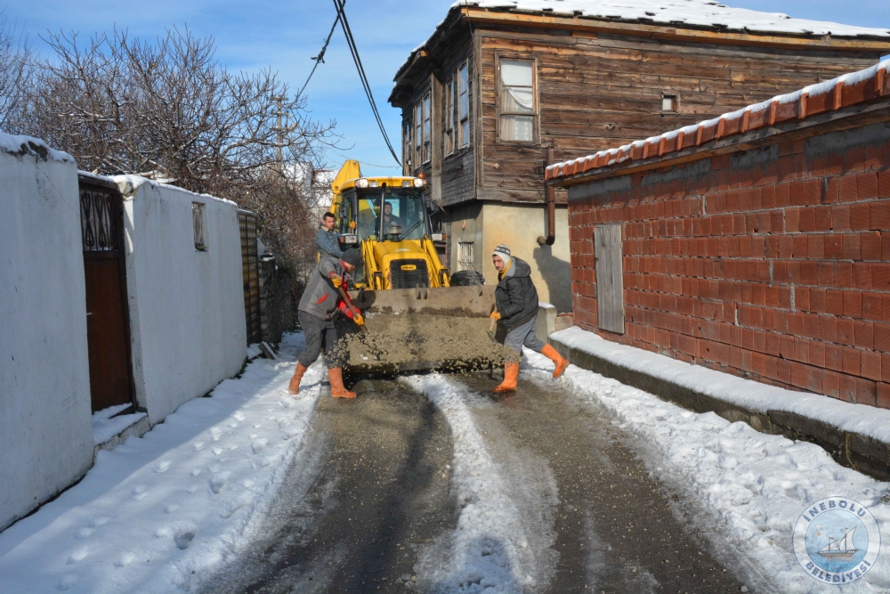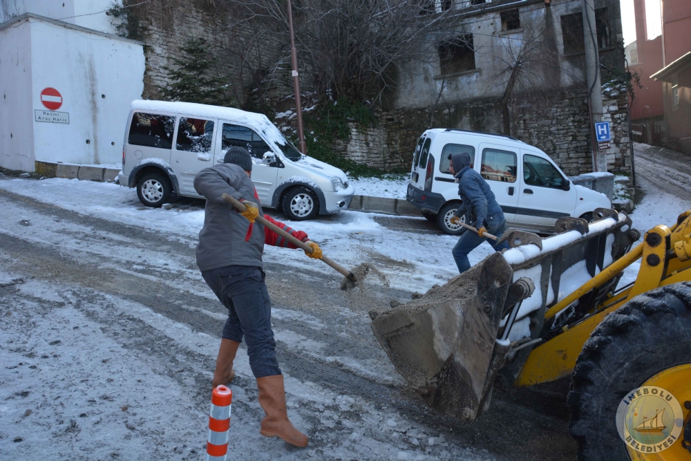 Hava sıcaklığının eksi derecelere kadar düştüğü İnebolu’da, Belediyemiz karla mücadele ekibi sokaklarda buzlanmaya karşı tuzlama ve kumlama çalışmaları yaptı. Aralıksız olarak çalışmalara devam eden İnebolu Belediyesi karla mücadele ekibi İnebolu’nun mahalle ve sokaklarında tuzlama ve kumlama çalışmalarına süratle devam ediyor.