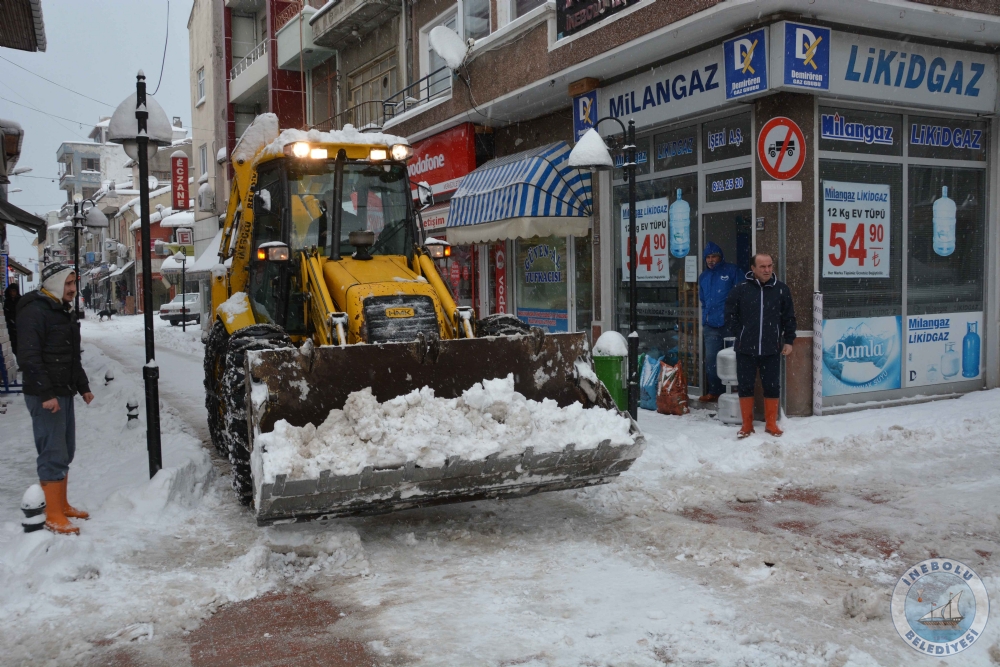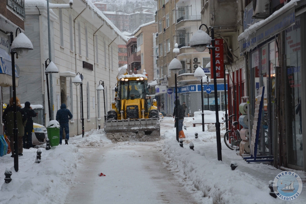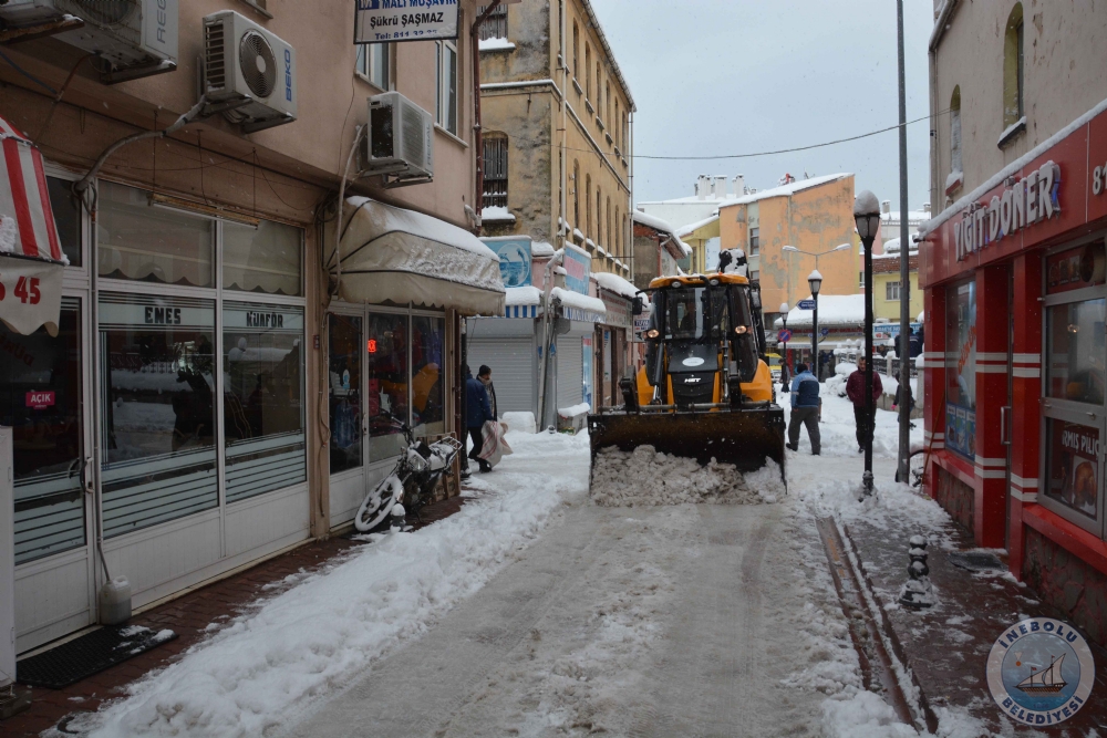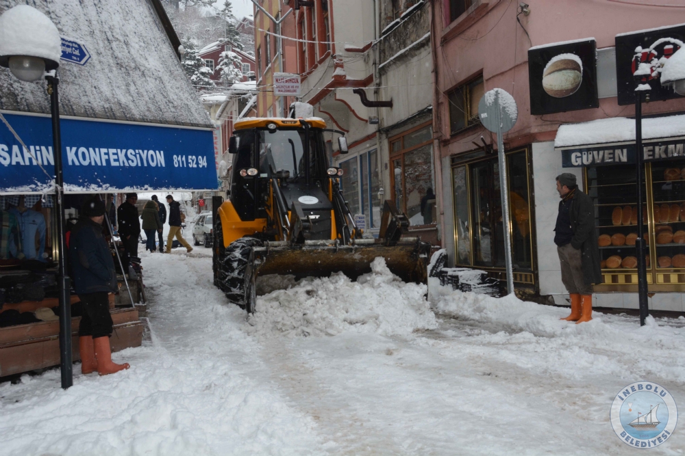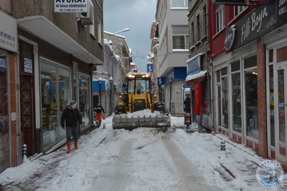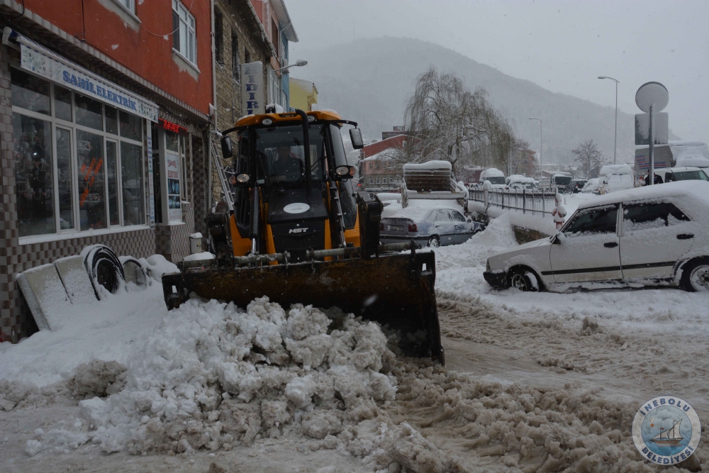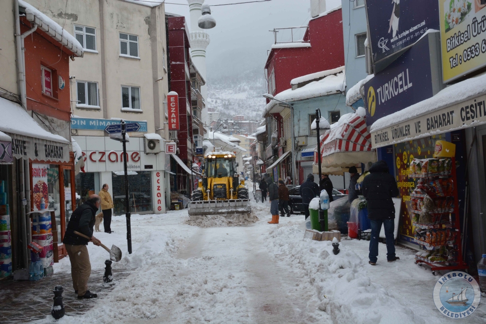 İlçe merkezinde ve çevresinde hafta sonu etkili olan ve hafta içi de etkisini sürdüren kar yağışına karşı Belediyemiz ekipleri kar küreme çalışmalarını yoğun şekilde sürdürüyor.