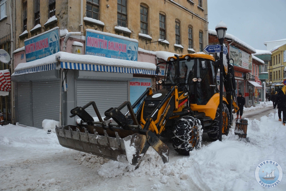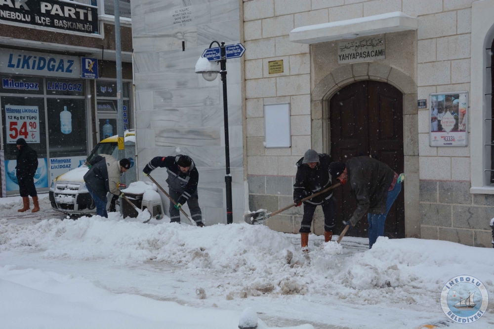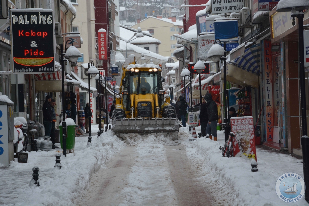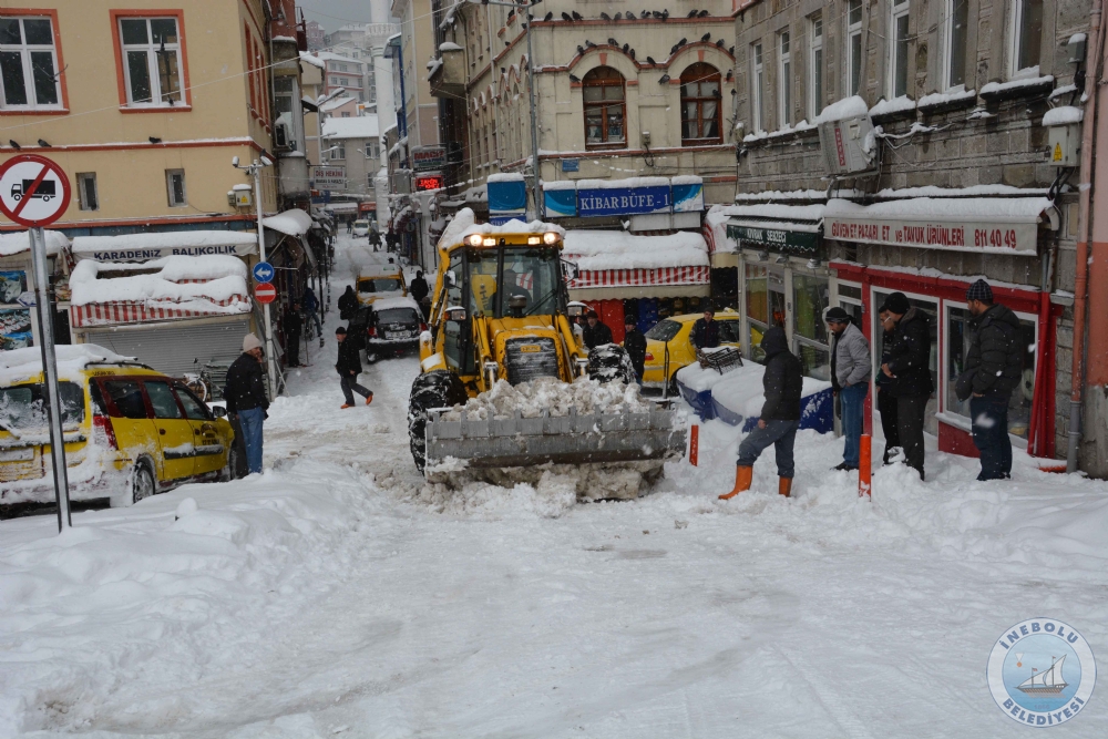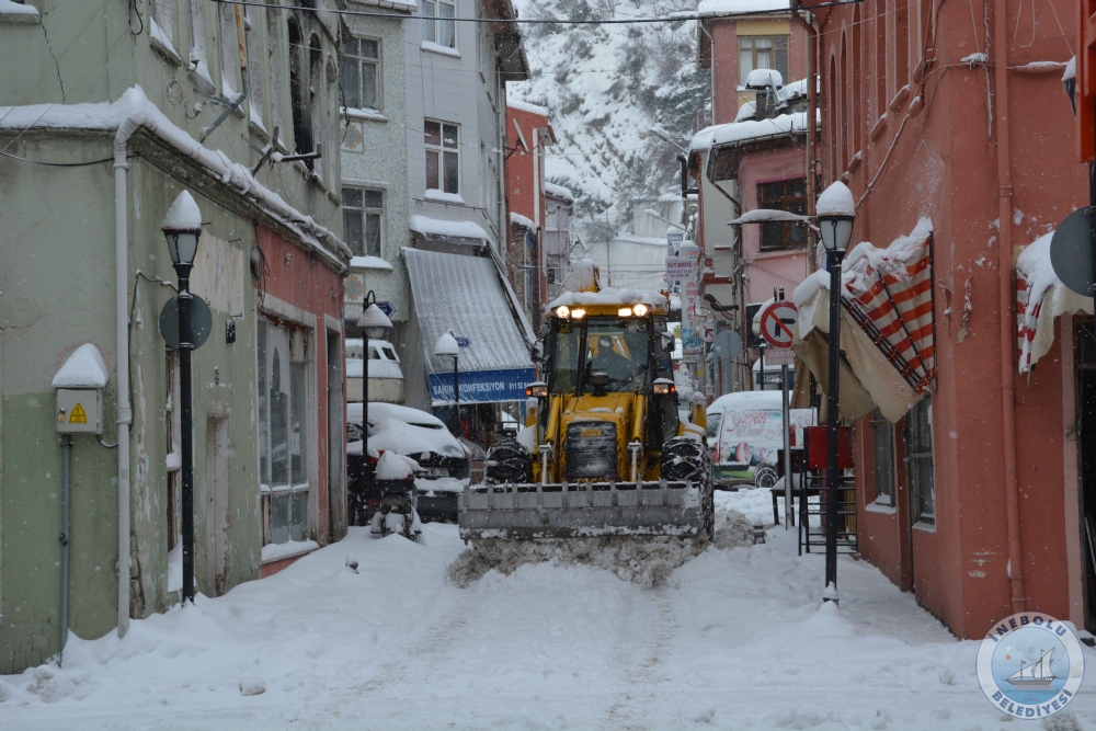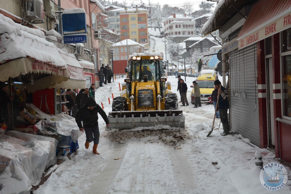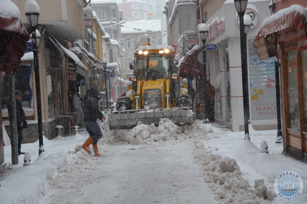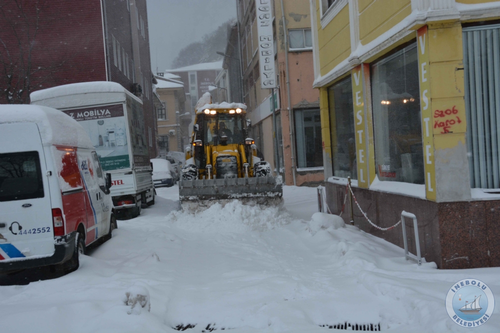 İlçe merkezinde ve çevresinde hafta sonu etkili olan ve hafta içi de etkisini sürdüren kar yağışına karşı Belediyemiz ekipleri kar küreme çalışmalarını yoğun şekilde sürdürüyor.