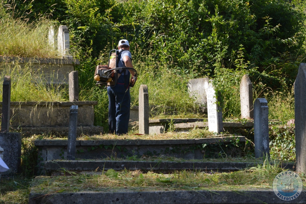 Mezarlıklar içerisindeki çevreye zarar veren çeşitli atıklar ile kuruyan otlar ve istenmeyen çalılar ekipler tarafından temizleniyor. İlçemiz mezarlıkları temiz bir görünüme kavuşturuluyor.