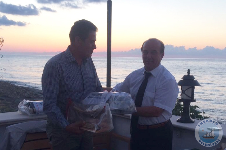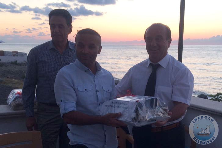 Belediye Başkanımız Engin UZUNER, İnebolu İstiklal Açık Deniz Yüzme Yarışının ilçemize kazandırılmasında emeklerinden dolayı hemşehrimiz Hasan HEKE’ye ve Mustafa ÖZER’e İnebolu denk kayığı maketi ve İnebolu Belediye paketi hediye etti.