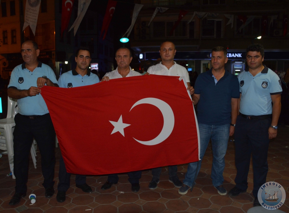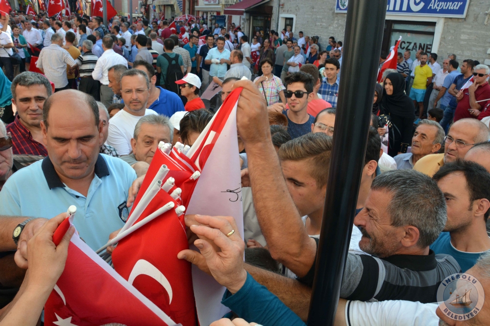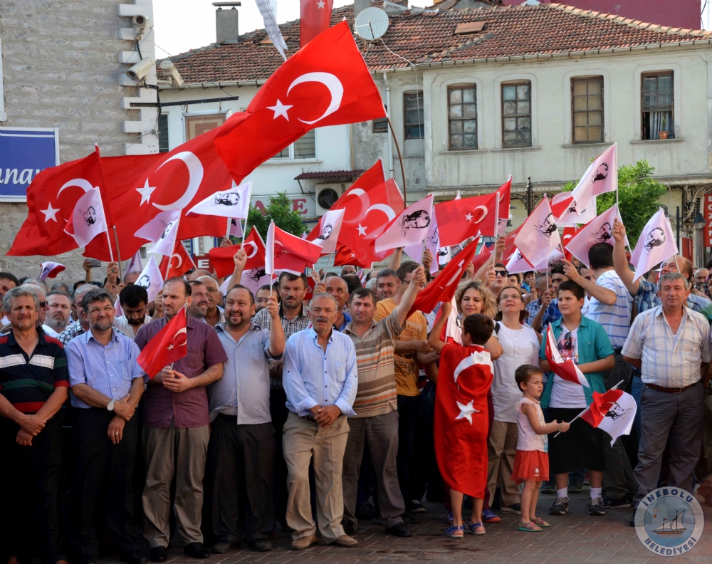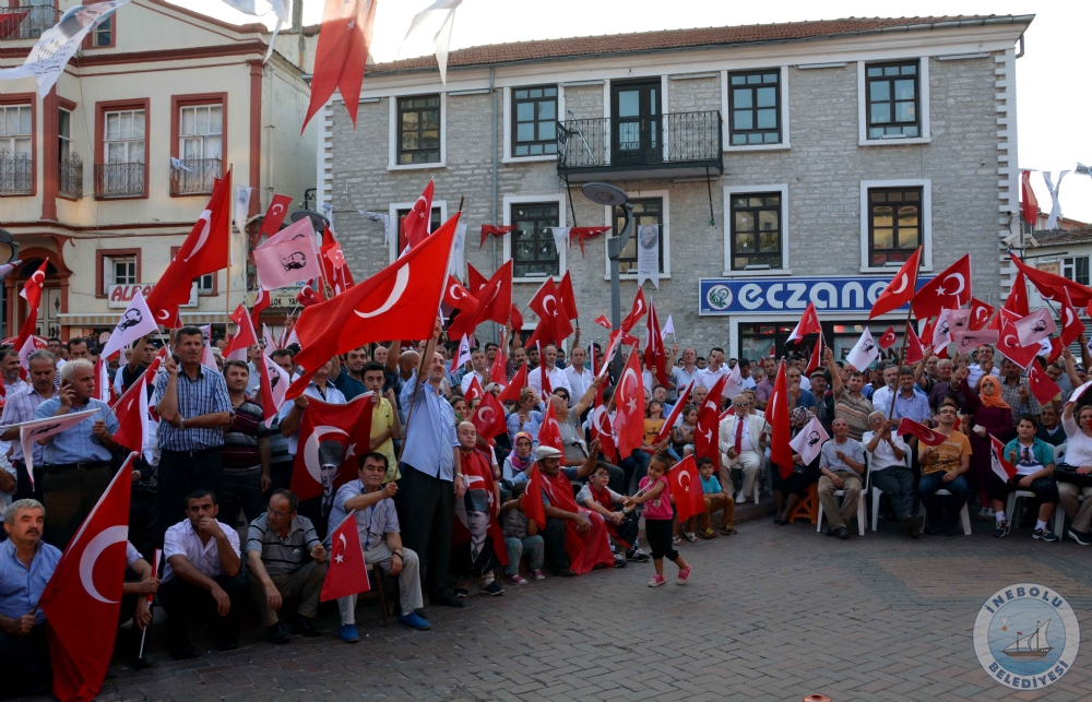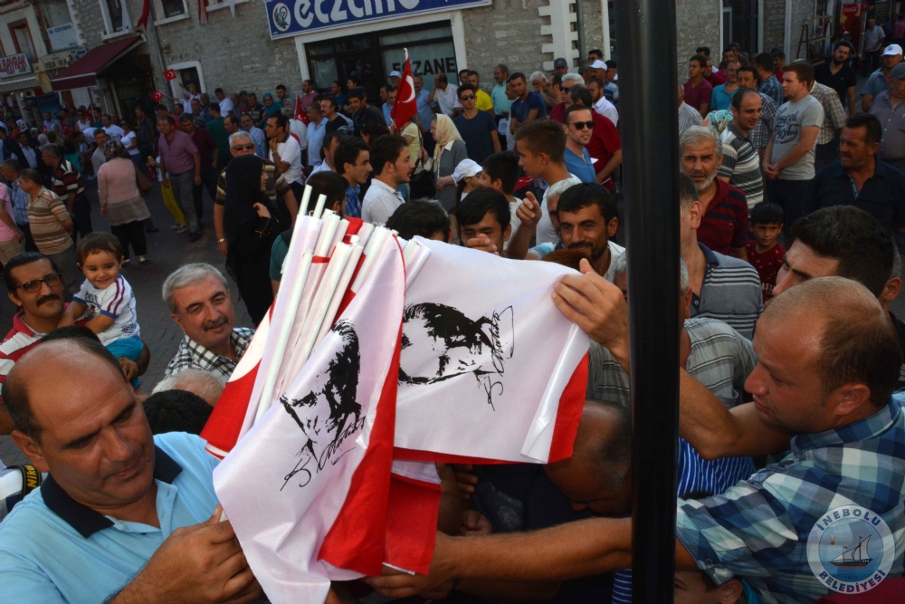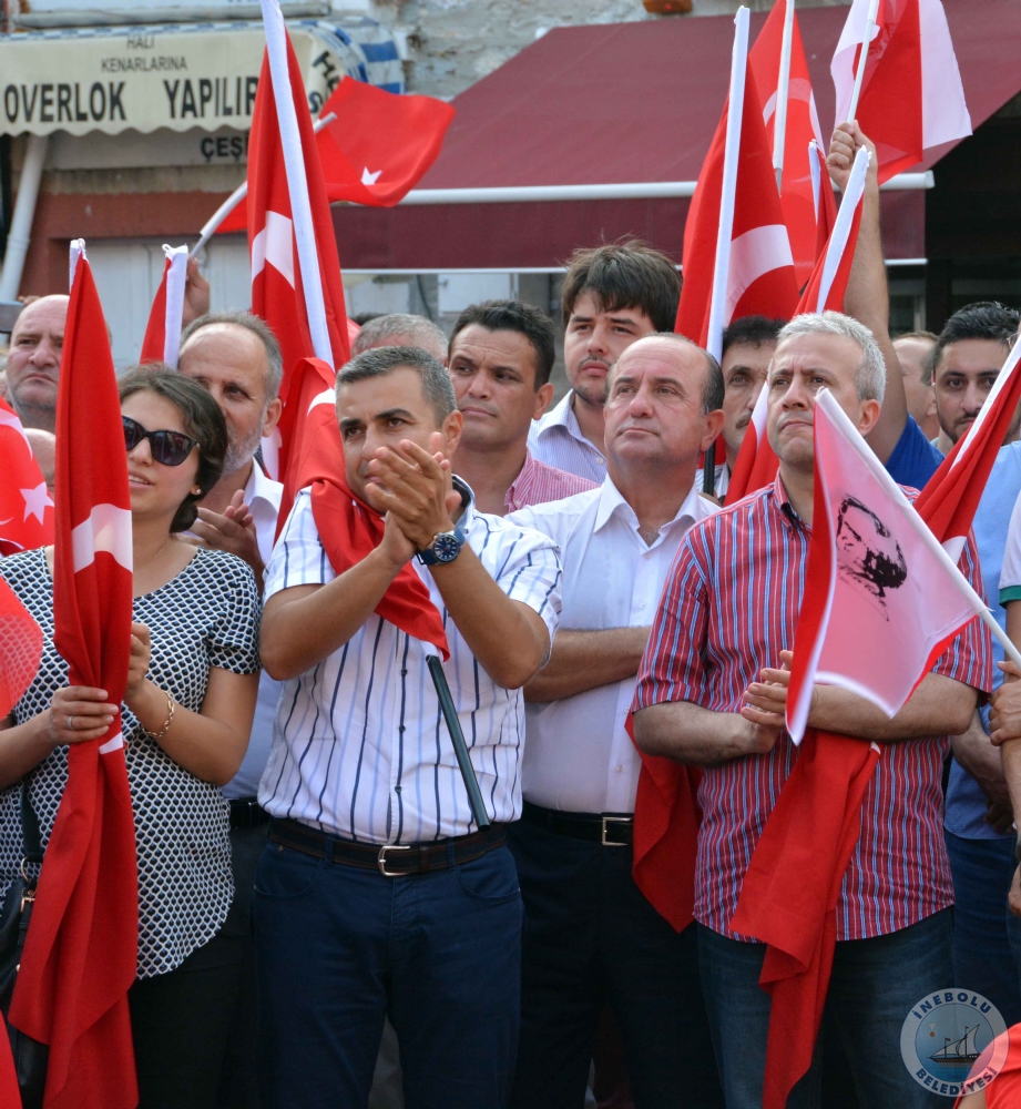 7 Ağustos 2016 Pazar günü İnebolu Kaymakamı Abdullah Atakan ATASOY, Belediye Başkanımız Engin UZUNER, Cumhuriyet Başsavcısı Erkan YILMAZ katılımları ile İnebolu Atatürk Anıtında Demokrası ve Şehitler Mitingi yapıldı.