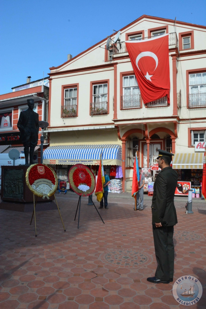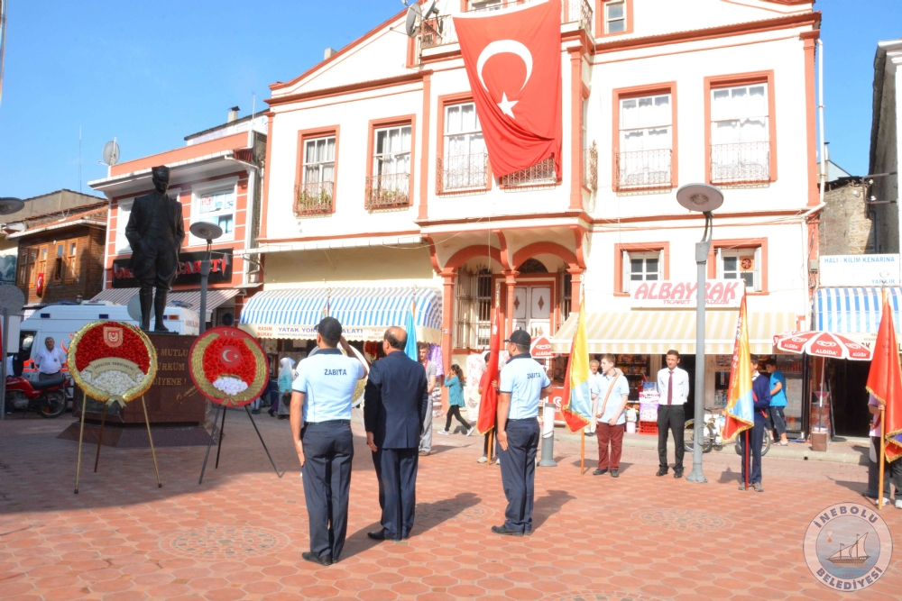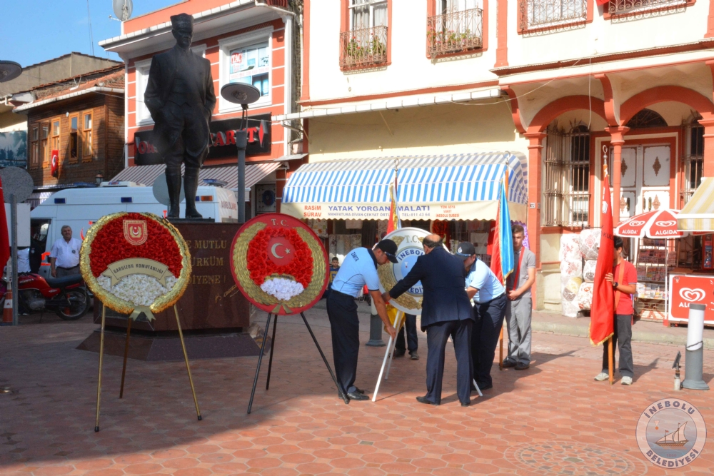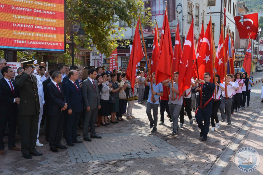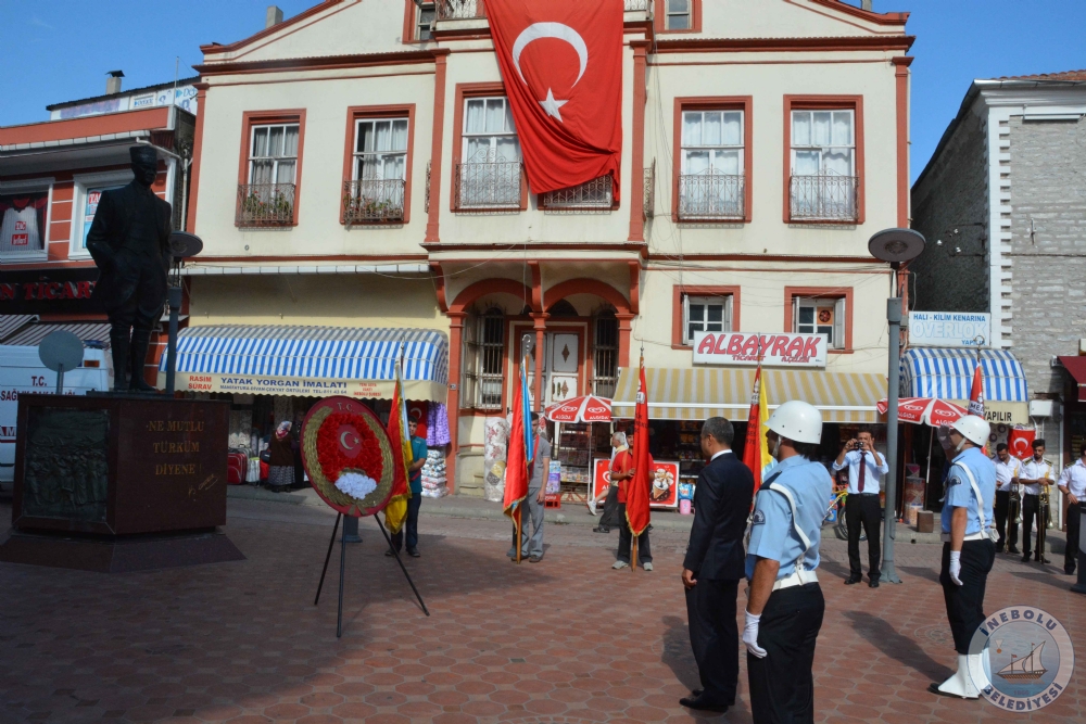 30 Ağustos Zafer Bayramının 94. yıldönümü 30 Ağustos 2016 Salı günü Atatürk Anıtı önünde yapılan törenle kutlandı. Anıt önündeki törene, İlçe Kaymakamı Abdullah Atakan ATASOY, Garnizon Komutanı Üsteğmen Gökhan TAŞKIN, Belediye Başkanımız Engin UZUNER, Cumhuriyet Başsavcı V. Serkan EROĞLU, Kamu Kurum ve Kuruluşlarının Temsilcileri, Siyasi Partilerin İlçe Başkanları ve üyeleri ile gerçekleşti. Kaymakamlık, Garnizon Komutanlığı, Belediye Başkanlığı çelenkleri konularak, Çelenk sunumu tamamlandı. Günün anlam ve önemini belirten konuşma Personel Teğmen Oğuzhan DOLGUN tarafından yapıldı. Ardından İnebolu İmam Hatip Ortaokulu öğrencisi tarafından şiir okundu.