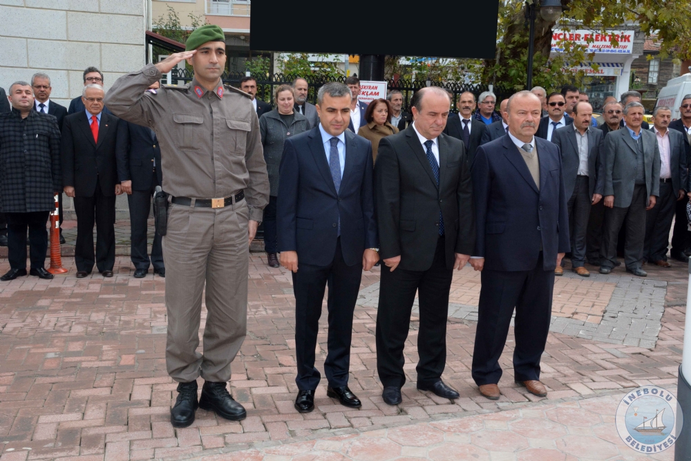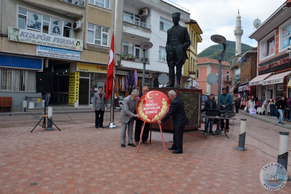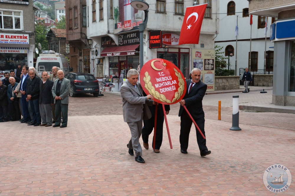 Anıt önündeki  törene  İnebolu Kaymakamı Abdullah Atakan ATASOY, Garnizon Komutanı Üsteğmen Gökhan TAŞKIN,  Belediye Başkanımız Engin UZUNER, İnebolu Muhtarları Birleştirme ve Dayanışma Derneği Başkanı Ahmet ÇAKILCI,  Kamu Kurum ve Kuruluşlarının Temsilcileri, Siyasi Parti Temsilcileri ve İlçe Başkanları, Banka Müdürleri ve İlçe mahalle ve köy muhtarlarının katılımı ile gerçekleşti. İnebolu Muhtarlar Derneği çelengi Atatürk Anıtına konularak,  Çelenk sunumu tamamlandı.