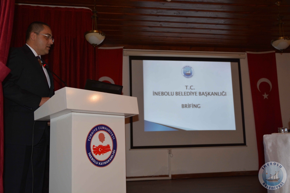 Ardından İnebolu Belediyesi tarafından hazırlanan brifing ise Belediye Başkan Vekilimiz Süha ALTINÖZ tarafından sunuldu. Belediye Başkan Vekilimiz Süha ALTINÖZ, sözlerine Belediyemizin kendi yağıyla kavrulan bir Belediye olduğunu belirterek başladı. Muhalefet Belediyesi olmanın zaman zaman sıkıntıları yaşansa da bazı Belediye projelerinin ödül aldığını söyledi. Belediyemizin 2017 bütçesinin 14.600.00 TL olarak belirlendiğini açıkladı. Resmi Gazetede yayımlanan Bakanlar Kurulu kararı ile mahalle sayısının 14’e, merkez nüfusunun da 10.786’ ya çıkacağını ifade etti. İnebolu Belediyesi yaptığı Sanat Sokağı, El Sanatları Çarşısı, Yeni Hastane Kanalizasyonları, Yer Altı Konteynırları, Bisiklet Yolu, Kent Müzesi gibi çalışma ve projeleri anlattı. Dolgu Alanı projesi, Yeni Pazar Yeri projesi, Eski Cezaevi restorasyonu, Yol çalışmalarını, Eski konakların restorasyonunun yapılarak hem öğrenciye konaklama hem de turizme kazandırıldığını belirtti. Belediyemizce kiralanan İnebolu Orman İşletmesine ait Orman Kampının projesi ilk defa brifing sunumunda paylaşıldı. Önümüzdeki süreçte ilçe turizmine kazandırılacağı belirtildi. Yeni Hastane projesi için İmar Kanununun 18. Madde uygulaması yapılması için Meclis kararı alındığını ve işin firmaya verildiğini açıkladı. Hastane inşaatının başlamasına engel olan 18. Madde uygulamasının Aralık ayında tamamlanmasının beklendiğini belirtti.