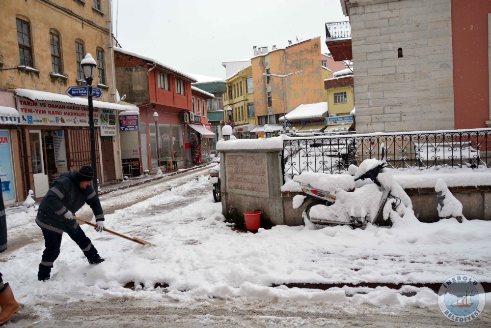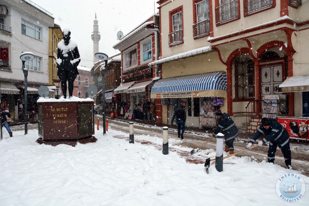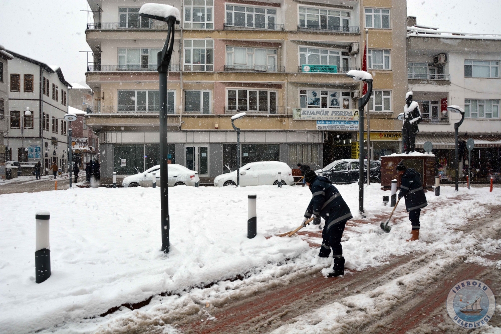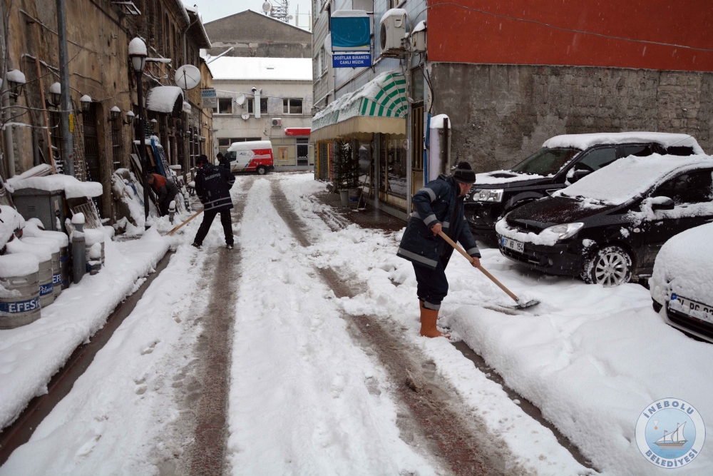 Belediyemiz meteorolojiden gelen haberler doğrultusunda, İnebolu’da herhangi bir olumsuzluk yaşanmaması için Belediye Başkanımız Engin UZUNER kar hazırlık çalışmalarını bizzat yerinde inceleyerek önceden önlem almıştı. Etkili olan kar yağışı nedeniyle halkımızın herhangi bir olumsuz durumla karşılaşmamaları için, Belediyemiz ekip ve ekipmanlarınca karla kaplanan sokak ve caddelerin kar küreme çalışmaları aralıksız devam ediyor.
