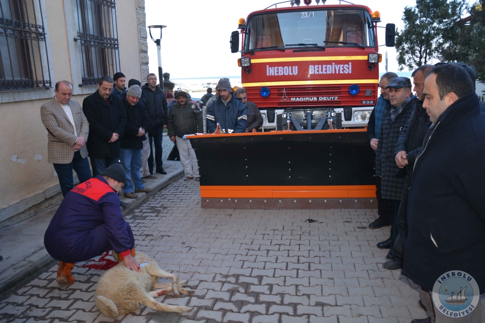 İnebolu Belediyesi, kar küreme  ve  tuzlama aracı için  13 Ocak 2017 Cuma günü Belediye Hizmet Binası önünde tören düzenlendi. Belediye  Başkanımız Engin UZUNER ‘in Başkanlığında yapılan törene  Meclis  Üyeleri, TSO Başkanı Şakir İŞERİ,  MHP ilçe Başkanı Mustafa  ATEŞ, Muhtarlar  Derneği Başkanı  Ahmet ÇAKILCI, Belediye personeli  ile  vatandaşlar katıldı. Yapılan duanın ardından  kesilen kurban ile kar küreme  ve   tuzlama  aracı  halkımızın hizmete  sunuldu.