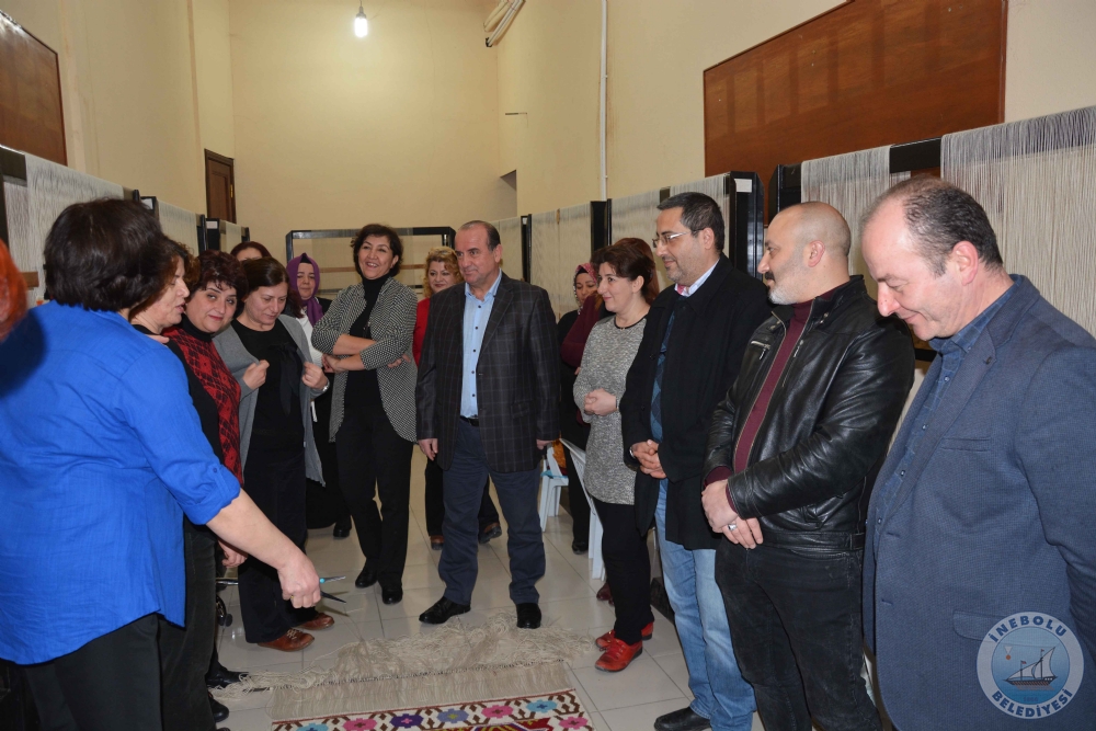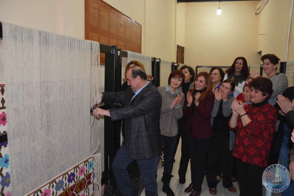 Belediyemizce açılan ücretsiz kilim dokuma kursu ile;  İnebolu’da kilim dokuma kültürünün yaşatılması, yaygınlaştırılması,  ev hanımlarımızın boş zamanlarını değerlendirmesi ve  ev ekonomilerine katkı sağlanması amaçlanmaktadır. Ücretsiz  Kilim dokuma  kursunda, Kursiyerlerin el  emeği göz  nuru ile  ilmek ilmek  dokuduğu kilim;  Belediye  Başkanımız  Engin UZUNER tarafından, Belediye  Meclis  Üyeleri ve  Belediye  Birim Amirlerinin  katıldığı  törenle  kesildi. Belediye Başkanımız Engin UZUNER, ilk kilimi  kesme  töreninde şu açıklamalarda  bulundu.