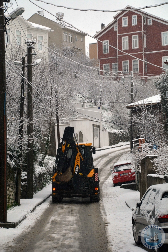 Belediyemiz ekiplerince ilçemiz cadde ve sokaklarında etkili olan yoğun kar yağışına karşı kar küreme çalışmalarına başlandı.