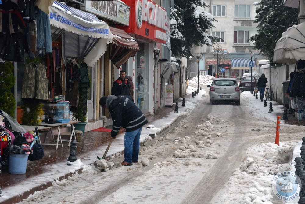 Belediyemiz ekipleri yoğun kar yağışına karşın Perşembe gününden itibaren gece gündüz demeksizin kar temizleme çalışmalarını aralıksız olarak sürdürüyor.