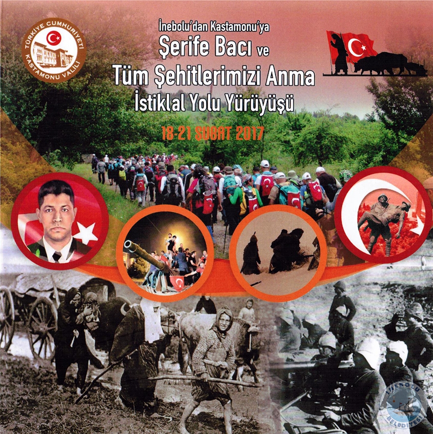 Ülkemizin bağımsızlığını, milletimizin birlik ve bütünlüğünü bozmaya kalkışan (FETÖ/PDY, PKK vb.) terör örgütlerine karşı canı pahasına şehit olan asker, polis ve sivil vatandaşlarımızın anısına ayrıca Milli Mücadele yıllarında Mustafa Kemal Atatürk'ün "Gözüm Sakarya'da Dumlupınar'da Kulağım İnebolu'da" sözleriyle vurguladığı İstiklal Yolunda başta cephane taşırken şehit düşen "Şerife Bacı" olmak üzere tüm şehitlerimizi anmak amacıyla 18 - 21 Şubat 2017 tarihleri arasında İnebolu - Kastamonu arası (95 Km 4 gün) "Şerife Bacı ve Tüm Şehitlerimizi Anma İstiklal Yolu Yürüyüşü" Kastamonu Valiliği destek ve himayelerinde İl Kültür ve Turizm Müdürlüğü koordinesinde yapılacaktır.