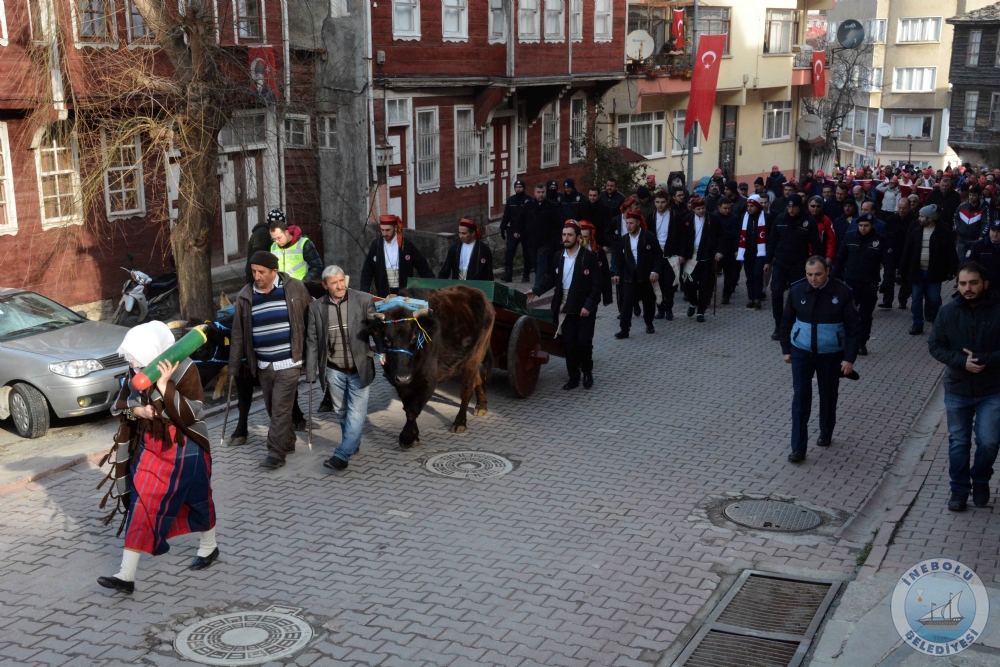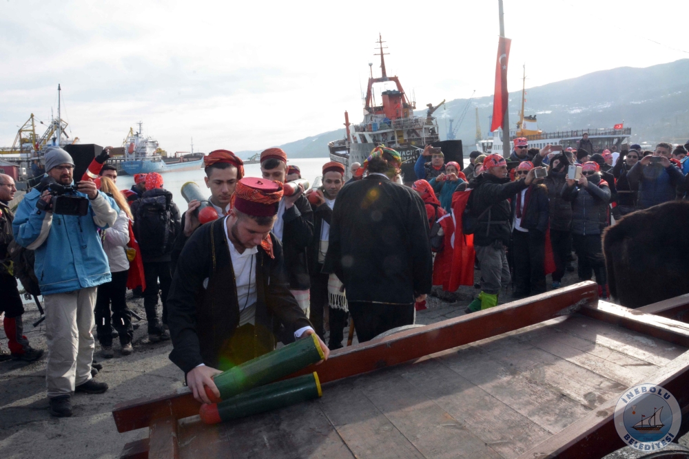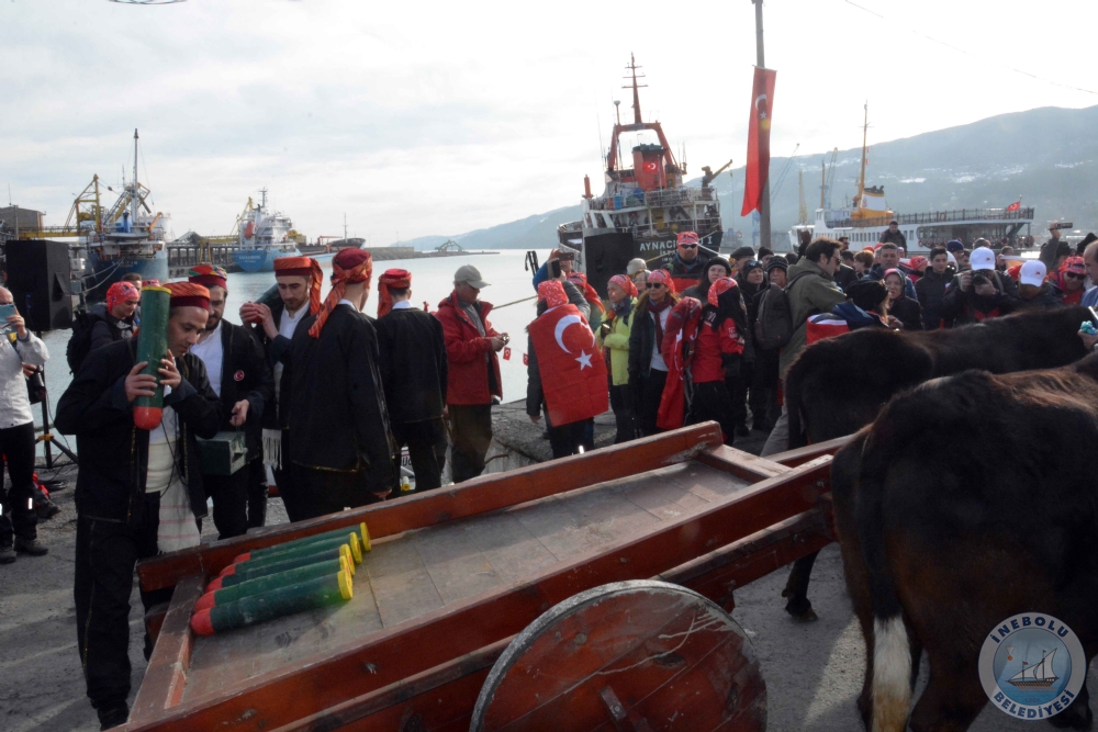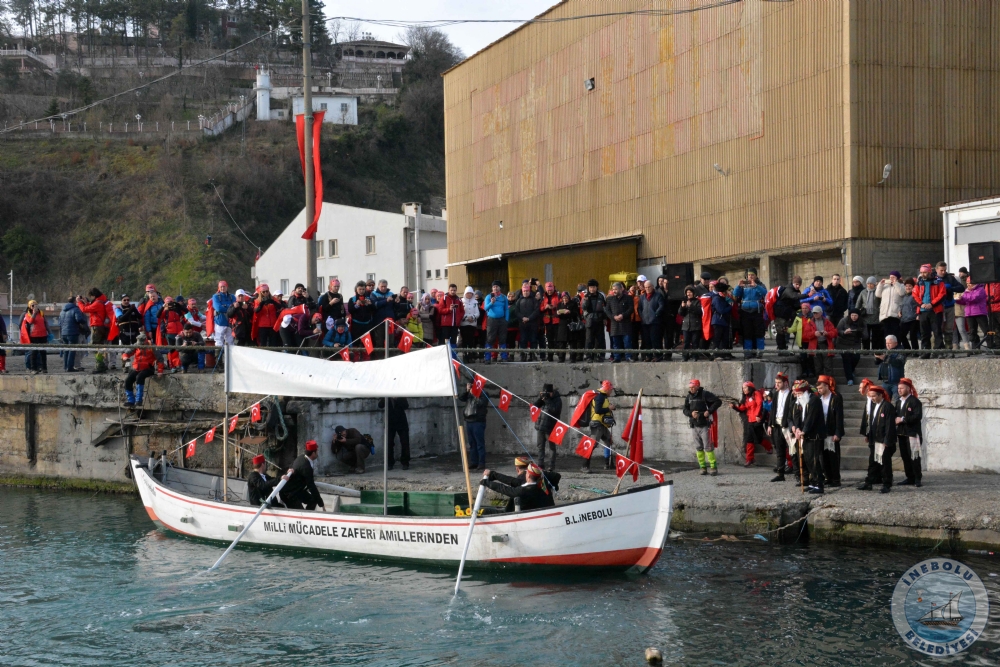 Törende, Belediyemiz organizesinde cephanenin denk kayığından sahile çıkartılarak cepheye sevkinin temsili olarak canlandırılması İnebolu Belediyesi Heyamola Ekibi ve temsili Şerife Bacı tarafından yapıldı.