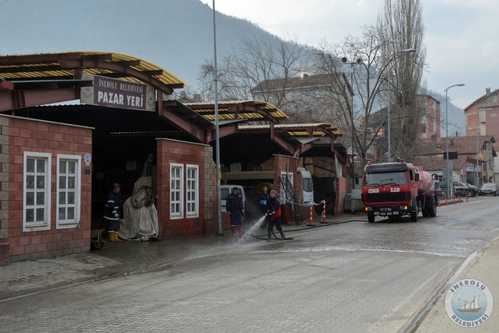 İnebolu Belediyesine ait Pazar Yerinde, Haftanın Salı ve Cumartesi günleri kurulan  ve İnebolu’ya  ait  ekolojik ürünlerin  satıldığı  Yöresel Halk Pazarında,  halkımızın alışverişlerini   temiz  bir  ortamda  yapabilmeleri için   Belediyemiz  temizlik  çalışmalarını sürdürüyor.