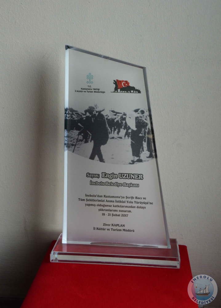 Belediye Başkanımız Engin UZUNER’in ilçe dışında olması nedeni ile Belediye Başkan Vekili Ayşe BAYSAL, İl Kültür ve Turizm Müdürü Ziver KAPLAN’ı misafir etti. Gerçekleştirilen ziyarette İl Kültür ve Turizm Müdürü Ziver KAPLAN, Belediye Başkanımız Engin UZUNER’e  İnebolu’dan Kastamonu’ya "Şerife Bacı ve Tüm Şehitlerimizi Anma İstiklal Yolu Yürüyüşü"ne yapmış olduğu katkılardan dolayı  bir kez daha teşekkür ederek, plaket  sundu. Plaketi Belediye Başkanımız Engin UZUNER adına Belediye Başkan Vekili Ayşe BAYSAL’a takdim etti.