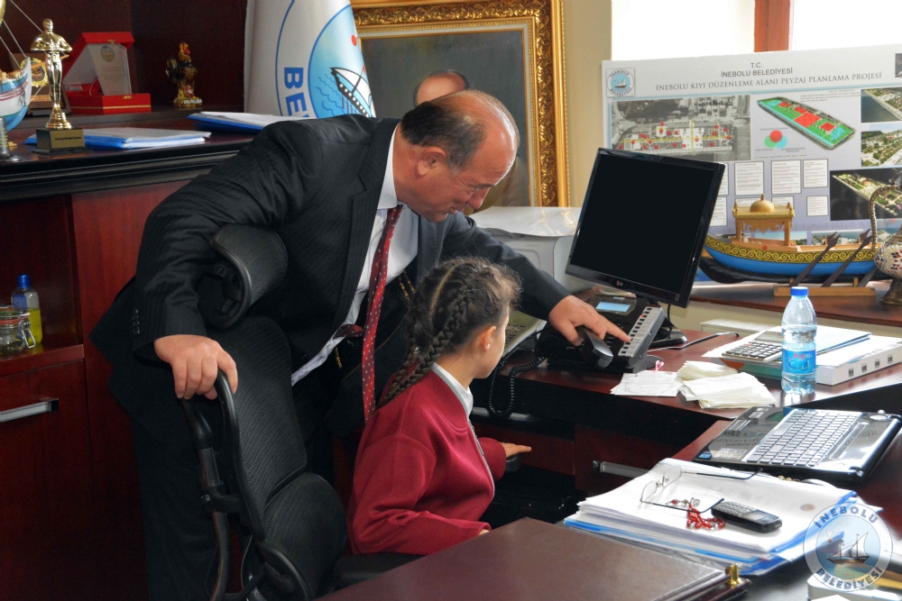 Başkanlık Makamında gerçekleştirilen ziyarette, Mustafa Şerbetçi İlkokulu idareci ve öğrencilerini Belediye Başkanımız Engin UZUNER ağırladı. Ardından Belediye Başkanlığı koltuğuna 4. Sınıf öğrencisi Ebru SALCIOĞLU oturdu. Belediye Başkanı olan öğrenci, tüm çocukların Bayramını kutladı.