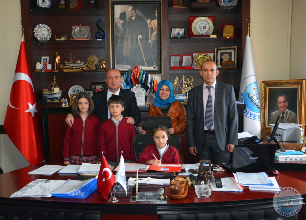 Cumhuriyetimizin Kurucusu Büyük Önder Atatürk’ün Türk ve Dünya çocuklarına armağan ettiği, Türk milletinin tarihinde yeni bir dönemin açıldığı, Türkiye Cumhuriyeti Devleti’nin temelinin atıldığı ” 23 Nisan Ulusal Egemenlik ve Çocuk Bayramının” 97. yıldönümü kutlama programı çerçevesinde, 21 Nisan 2017 Cuma günü Mustafa Şerbetçi İlkokulu Müdürü Halil KÖSEOĞLU, 4. Sınıf Öğretmeni Hanife ÖZDİN ve öğrenciler Başkanlık Makamını ziyaret ettiler.