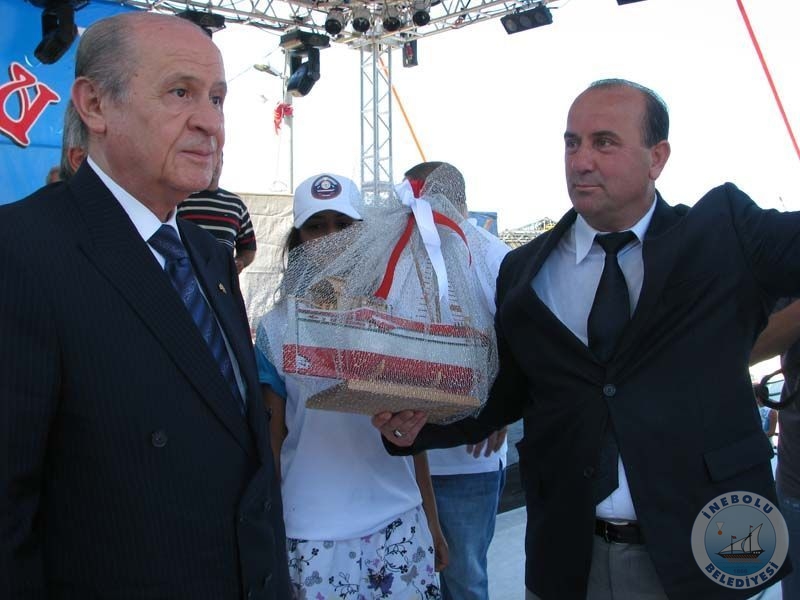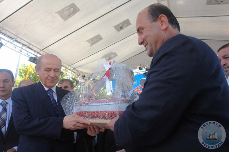 Belediye Başkanımız Engin UZUNER konuşma yaptı. Konuşmasında “İnebolu’nun tarihteki önemini vurgulayarak, İnebolulu denizci ecdatlarımızın milli mücadele ruhunu yaşatmak, tarihimize sahip çıkarak, bu gurur ve ibret verici gerçeklerin gelecek kuşaklara aktarılmasını sağlamak amaçları doğrultusunda Heyamola Deniz Şenlikleri Kültür ve Sanat Festivalimizin tertiplendiğini” belirtti. Daha sonra Başkan UZUNER, İnebolu’yu onurlandırması anısına Sayın Devlet BAHÇELİ’ye İnebolu çektirmesi maketi hediye etti. Müteakibinde 75. yıl Tersanesi sahibi Mustafa YAŞAR tarafından yaptırılan “İnebolu Çektirmesinin” denize indirilmesi için startı MHP Genel Başkanı Sayın Dr. Devlet BAHÇELİ verdi.