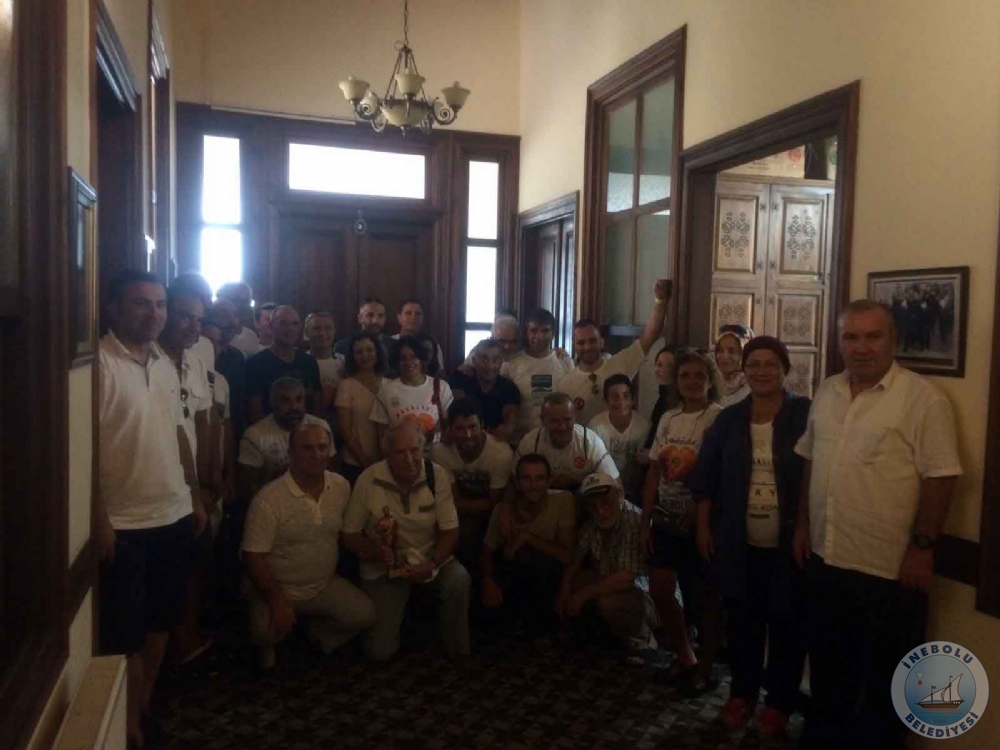 İnebolu Belediyesi İstiklal Manş Yüzme Takımı ve İnebolu 2. İstiklal Açık Deniz Yüzme Yarışına başvuran bazı yüzücüler, 12 Ağustos 2017 Cumartesi günü Belediye Başkanımız Engin UZUNER’i Başkanlık makamında ziyaret ettiler.