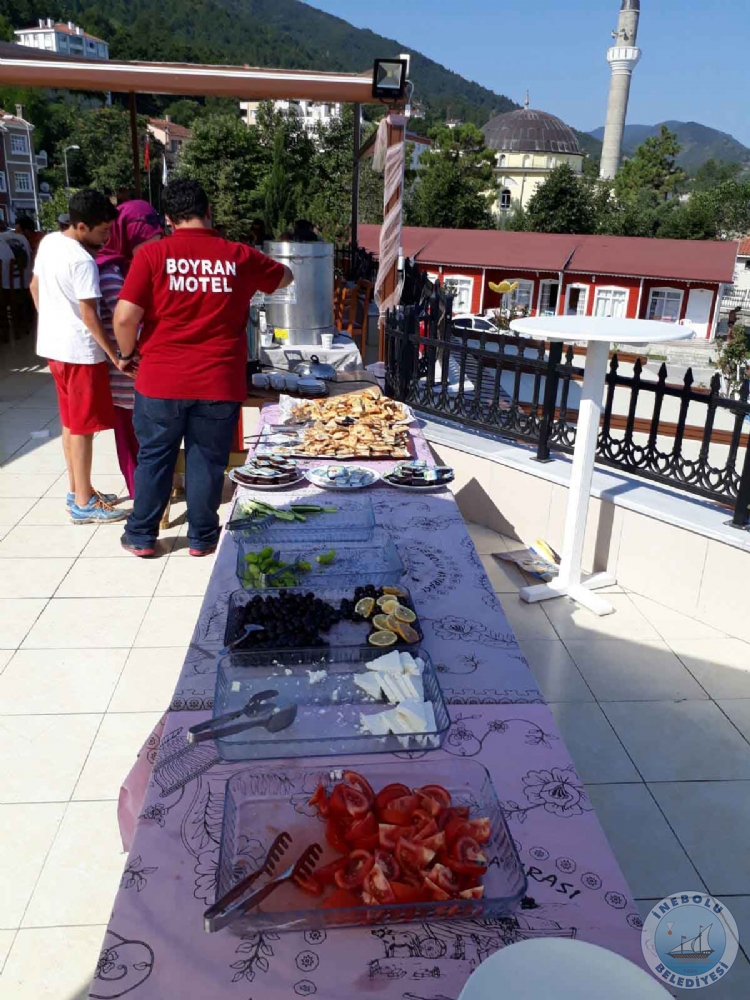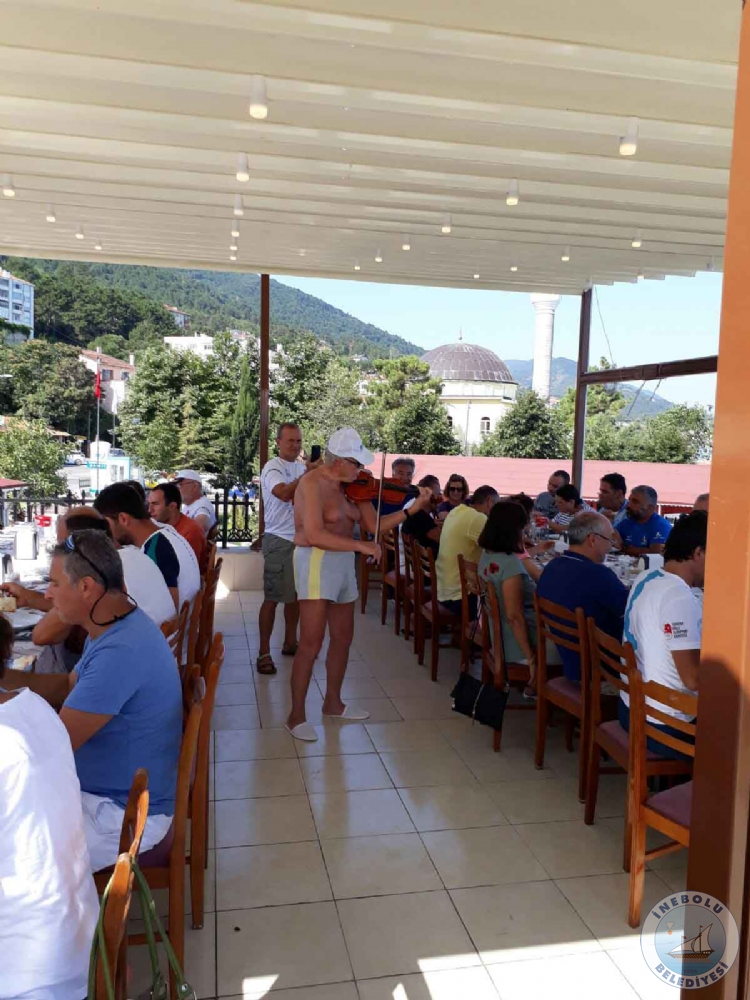 İnebolu Belediyesi İstiklal Manş Yüzme Takımı ve İnebolu 2. İstiklal Açık Deniz Yüzme Yarışına başvuran bazı yüzücüler ilçemizde en güzel şekilde ağırlandı. Belediye Başkanımız Engin UZUNER, İlçemize gelen misafir yüzücülere 13 Ağustos 2017 Pazar sabahı Belediyemiz Osman Sungur Motel’de sabah kahvaltısı ikramında bulundu. Kahvaltıda en yaşlı yüzücü Levent AKSÜT tarafından keman dinletisi sunuldu. Ardından konuklar Boyran sahilinde denizde yüzerek Belediye Başkanımız Engin UZUNER’e desteklerini gösterdiler. İnebolu Belediyesi personelleri tarafından yüzücülere çıkışta havlu ve istiklal madalyası madalyonu takdim edildi.