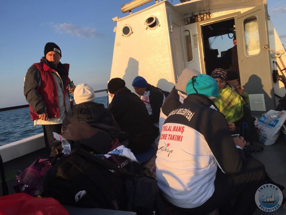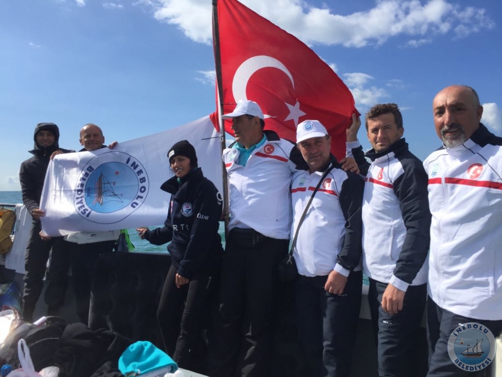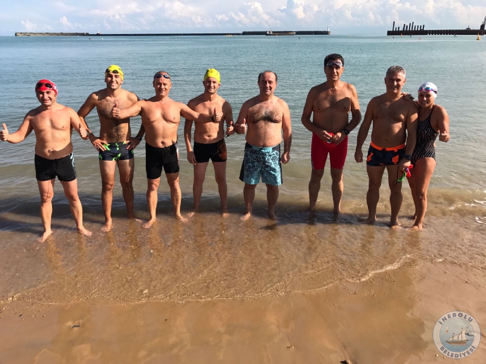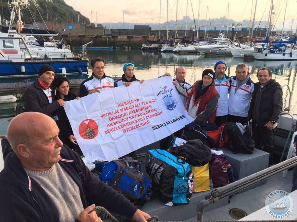 İngiltere’de Manş geçişi esnasında İnebolu Belediyesi İstiklal Manş Yüzme Takımı, Denizlerimizin temiz olmasına vurgu yaparken Belediye Başkanımız Engin UZUNER ile birlikte ‘‘İnebolu’ya İstiklal Madalyalı Tek İlçe unvanını kazandıran İnebolulu Kayıkçılar da Denizlerimizin kirli olmasını istemezlerdi!’’ pankartı açtılar.